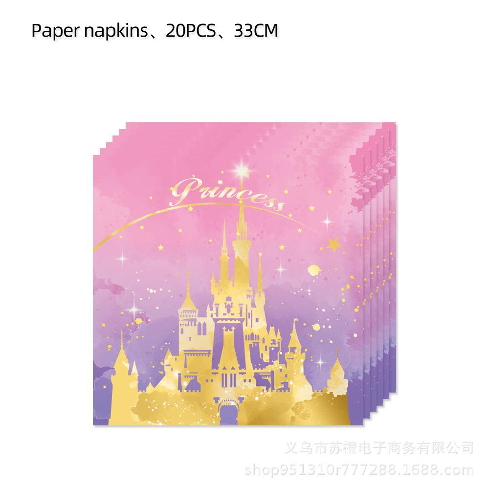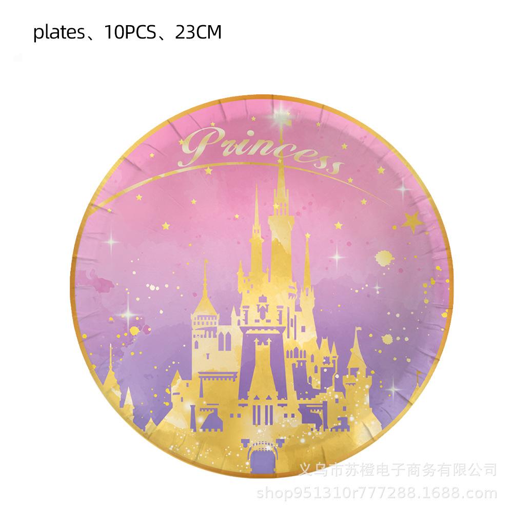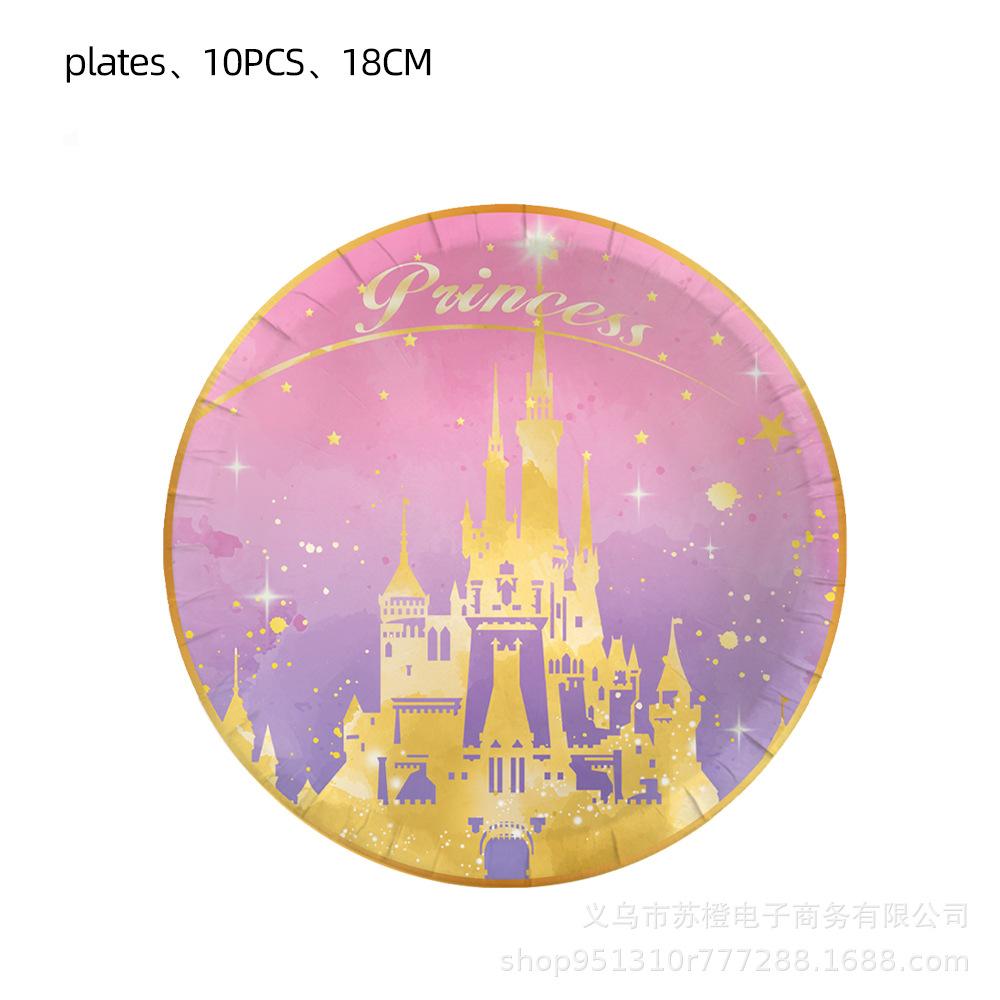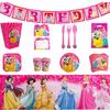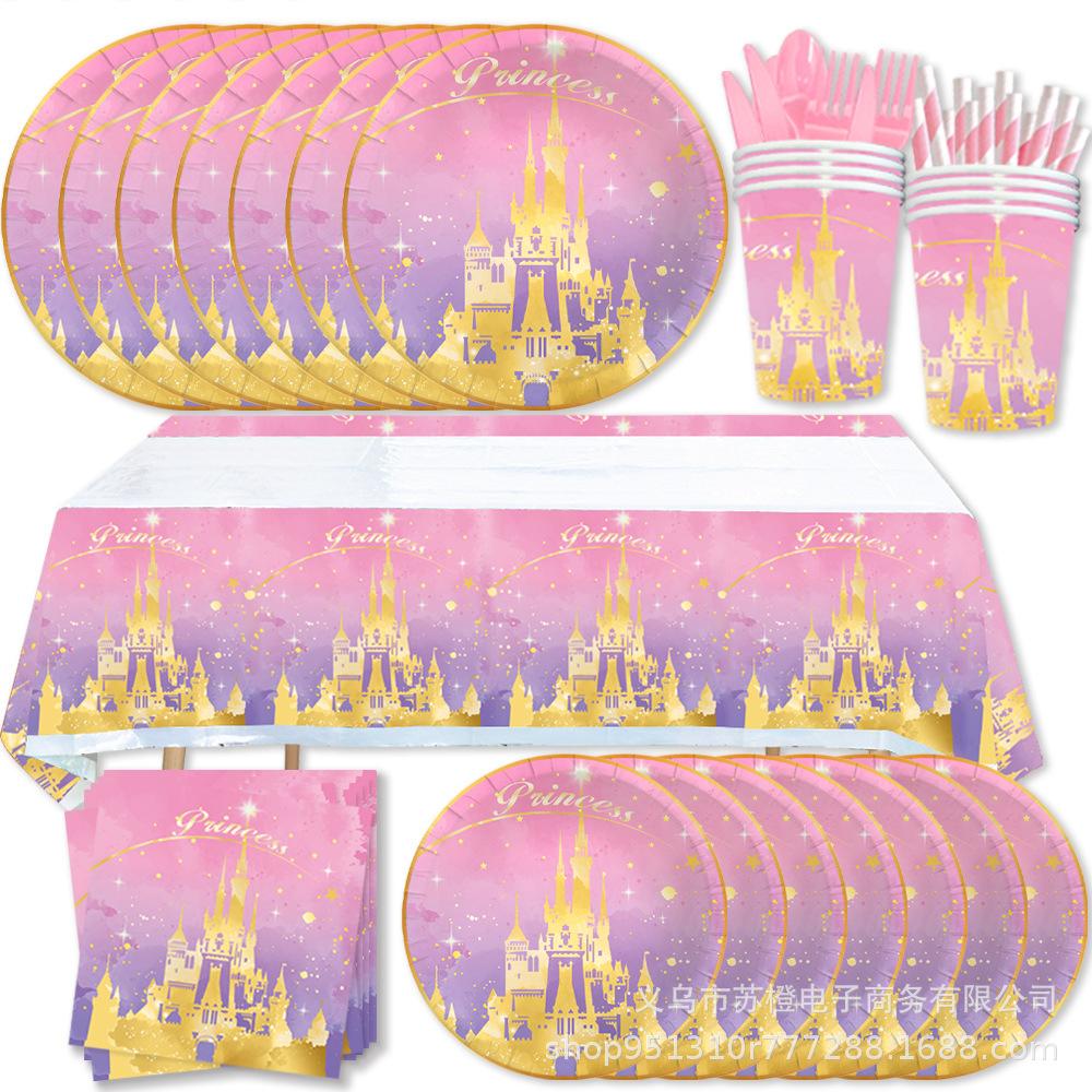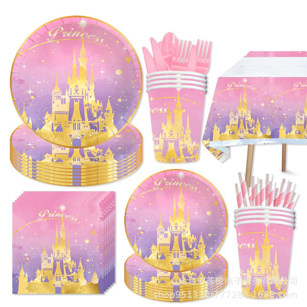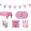 Suministros para fiesta de cumpleaños de niña con temática de castillo de princesa, vajilla, platos de papel, vasos de papel, pañuelos, decoración, suministros para fiesta