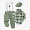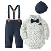 Traje de caballero para bebé, traje de banquete de cumpleaños para niños, mameluco de un año para bebé, ropa con capucha y pantalones de tirantes