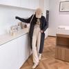Suéter de punto de longitud media con bolsillo de nuevo estilo de otoño para mujer, cárdigan de punto holgado y ajustado de estilo coreano