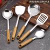 Espátula de acero inoxidable con mango de madera de imitación antiescaldaduras, cuchara, colador, espátula de cocina, juego de cocina, cuchara de cocina para el hogar