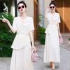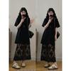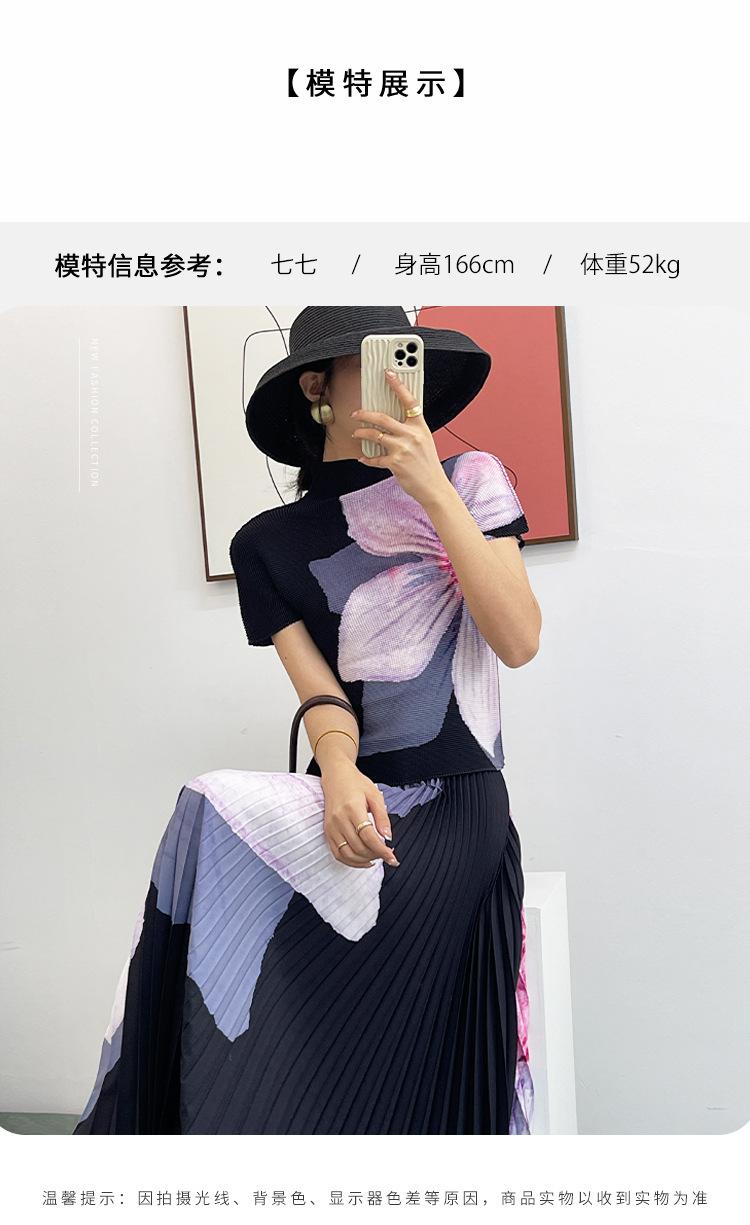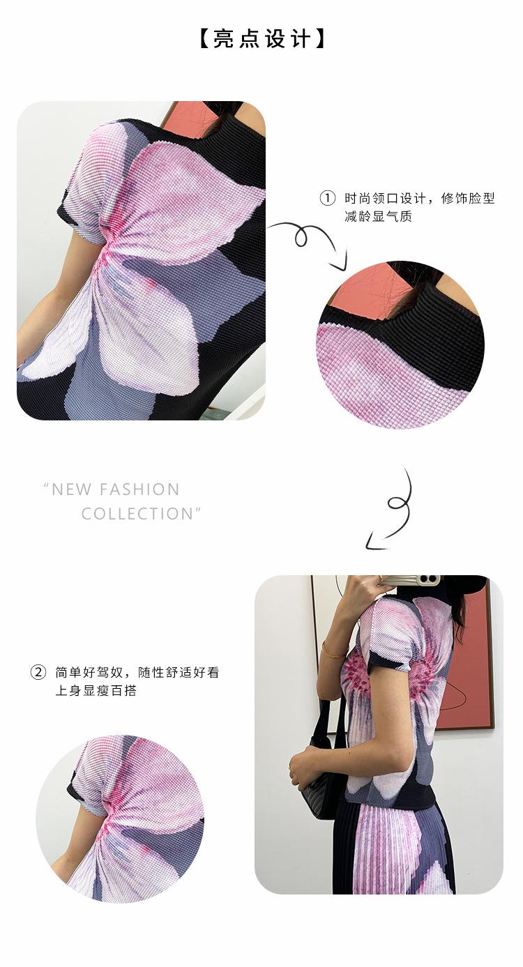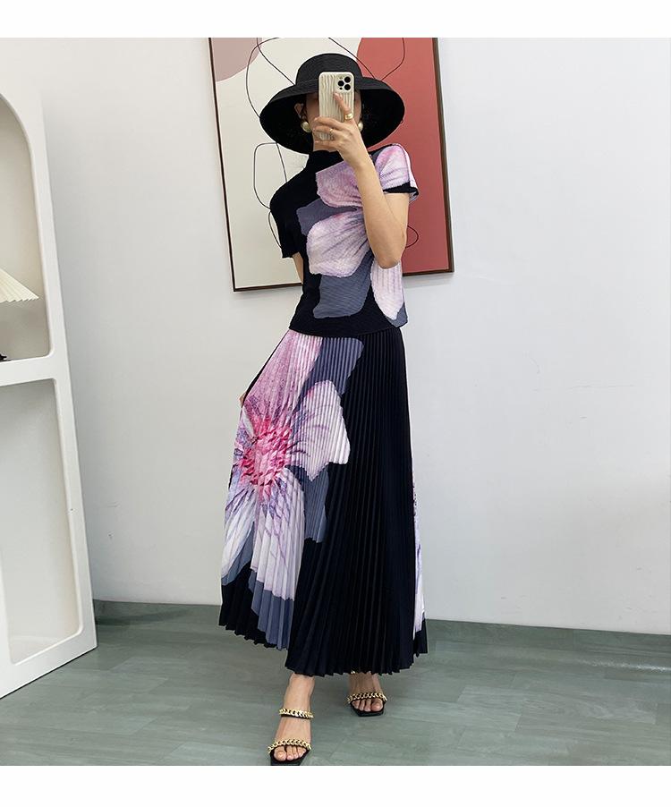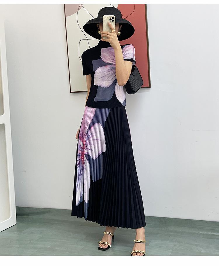 Ropa de gran venta de Xiaohongshu, traje plisado de moda para mujer, top ajustado estampado, falda plisada de manga larga, traje de dos piezas |