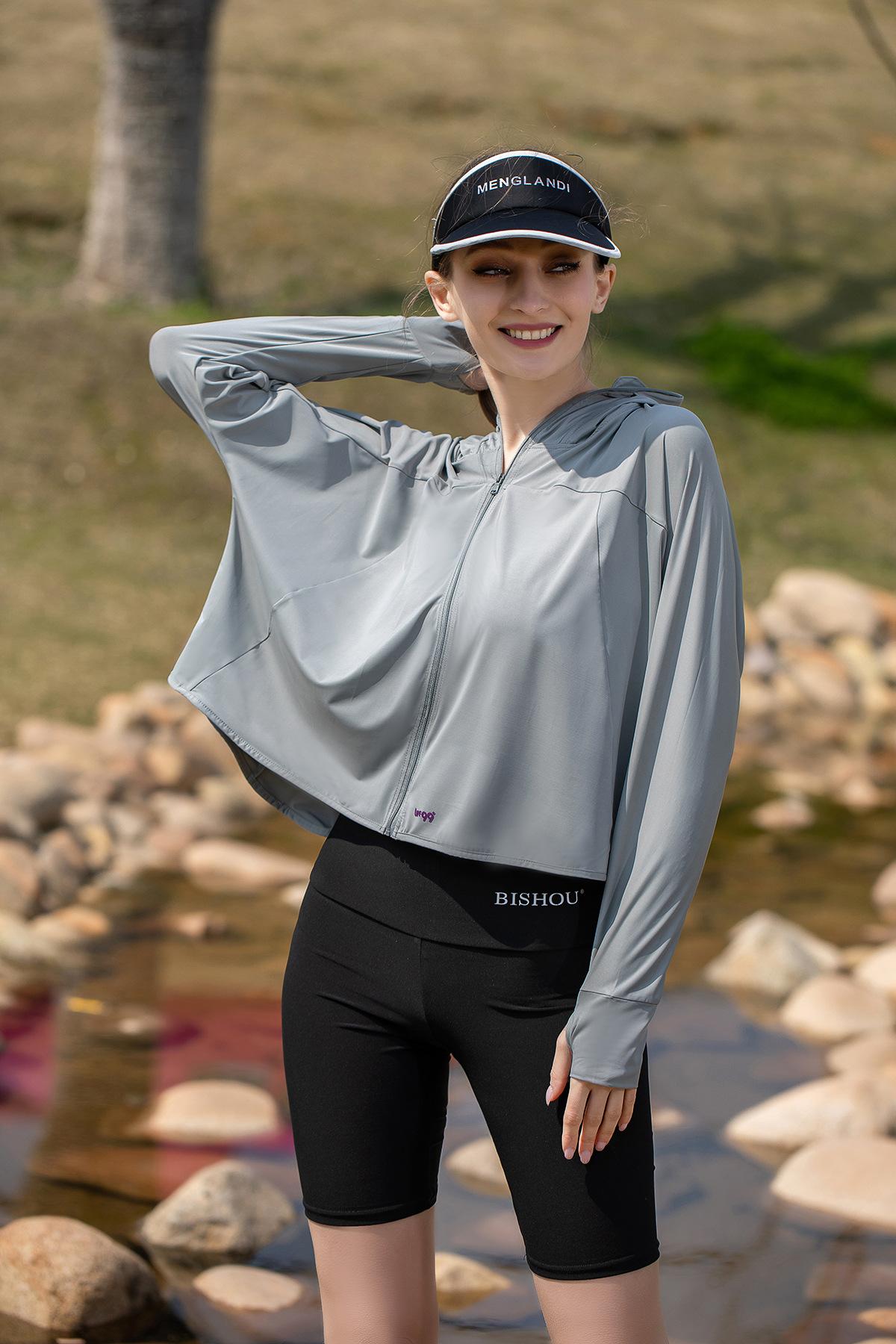 Hilo Original Ice Titanium Pegamento Negro Sombrero Grande Ropa Protectora Solar para Mujer 2025 Nuevo Verano Anti-UV Delgada Upf99 Ropa Protectora Solar