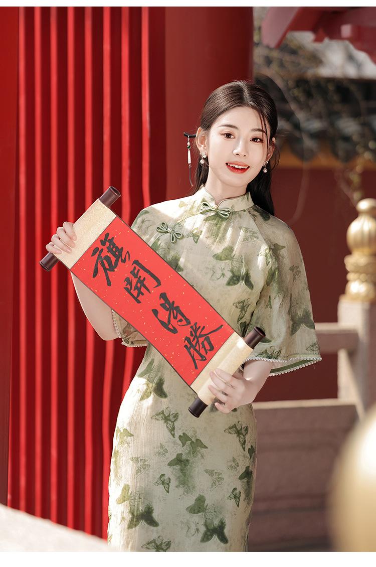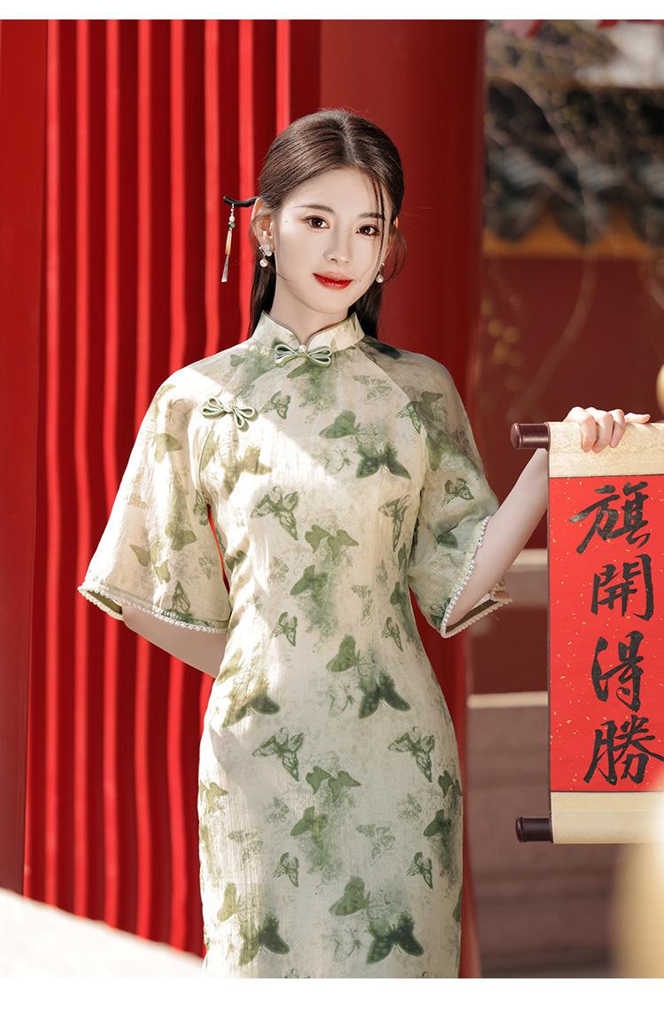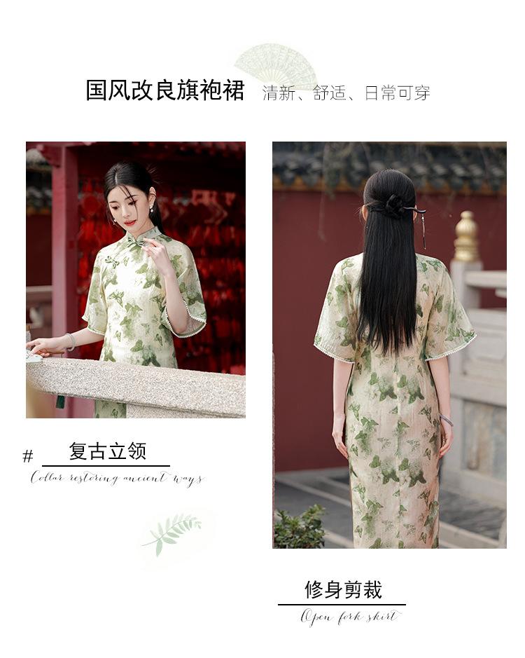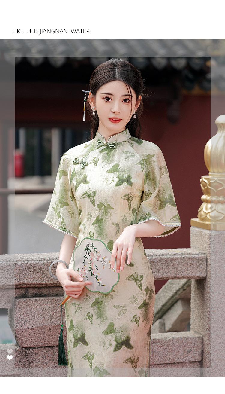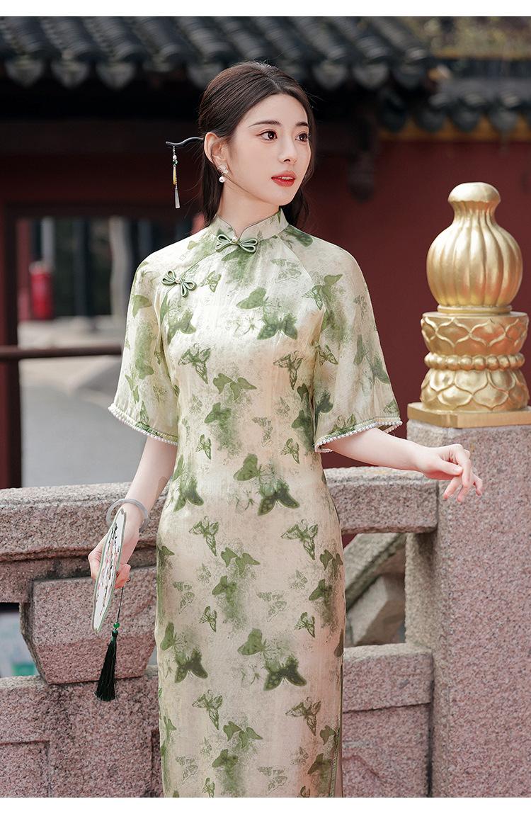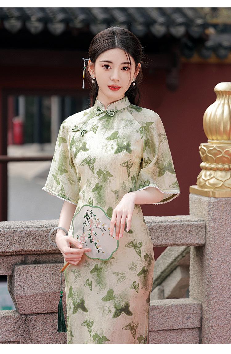Cheongsam de manga larga invertida de verano 2024, nuevo vestido diario mejorado para niña, estilo chino retro, nuevo estilo chino