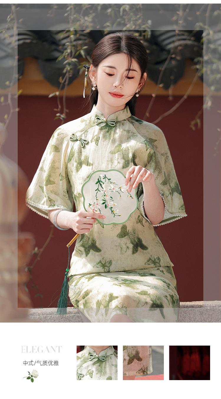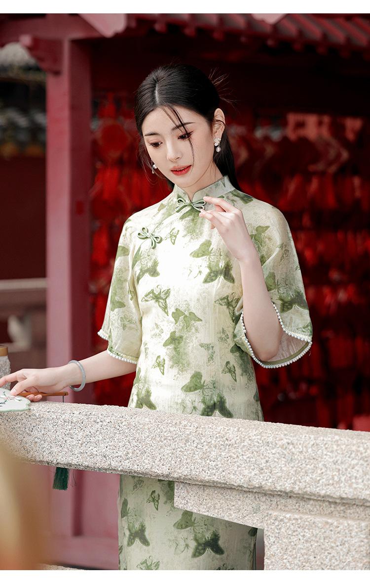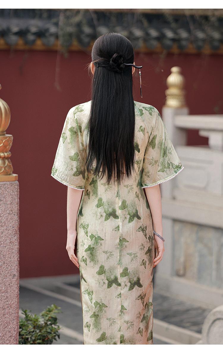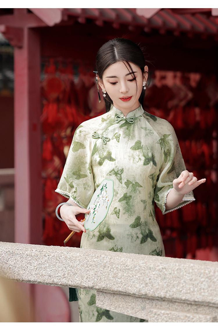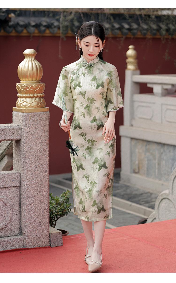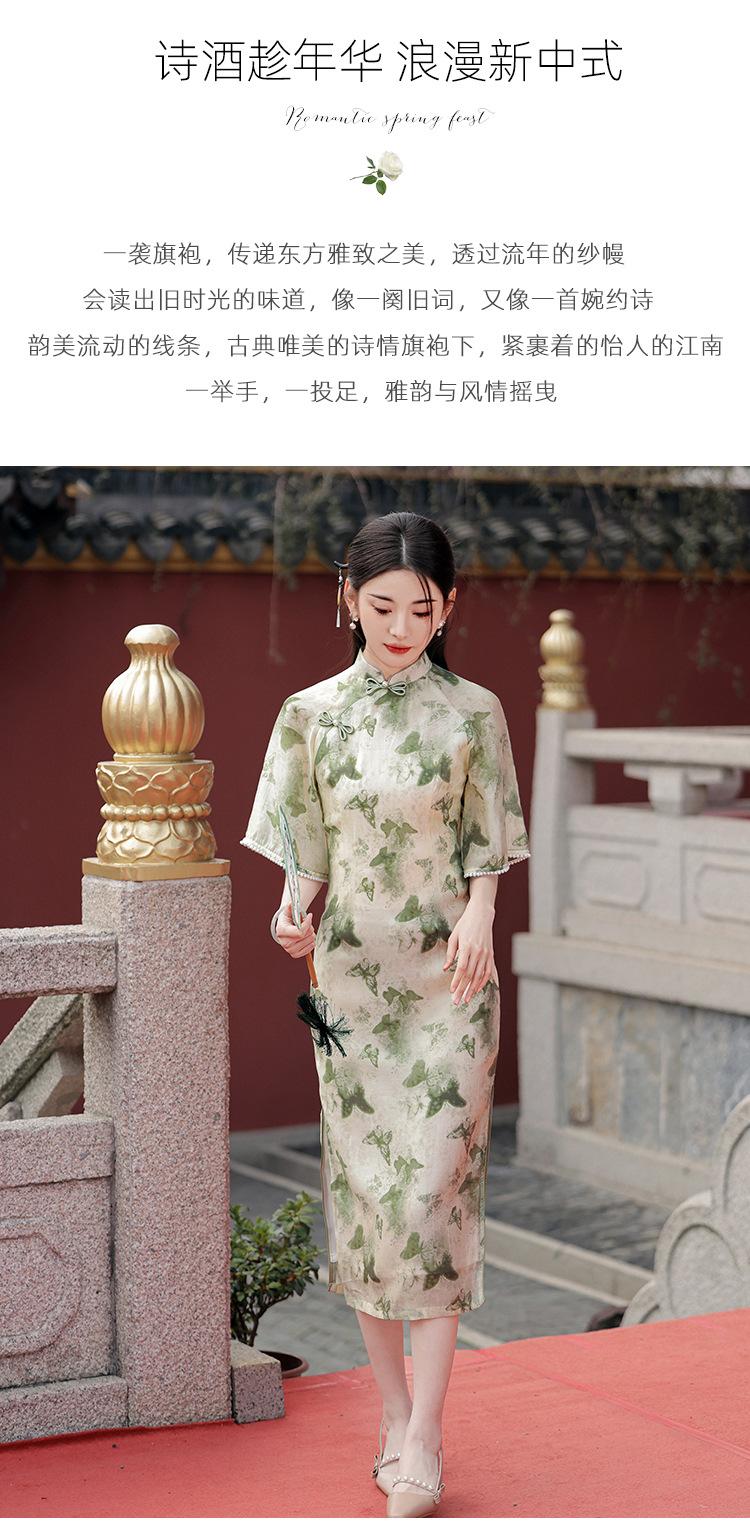 Cheongsam de manga larga invertida de verano 2024, nuevo vestido diario mejorado para niña, estilo chino retro, nuevo estilo chino