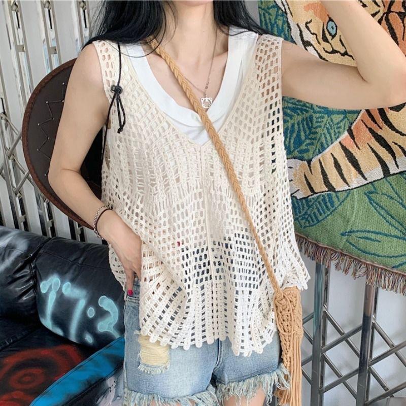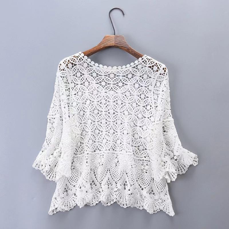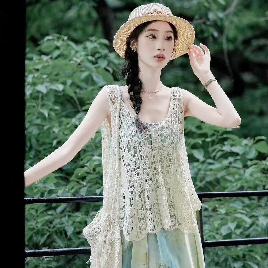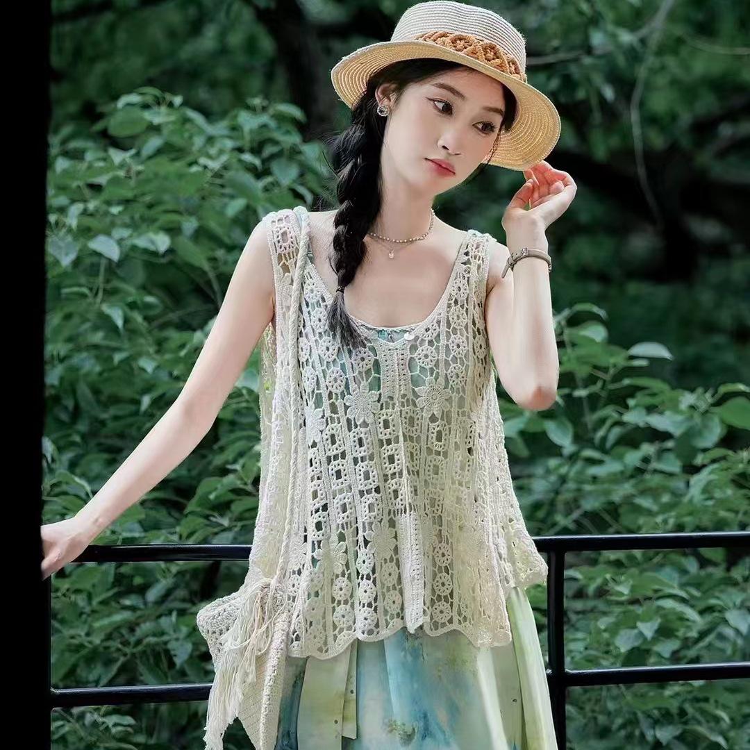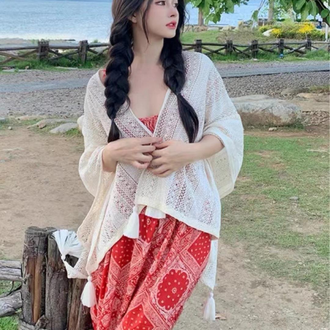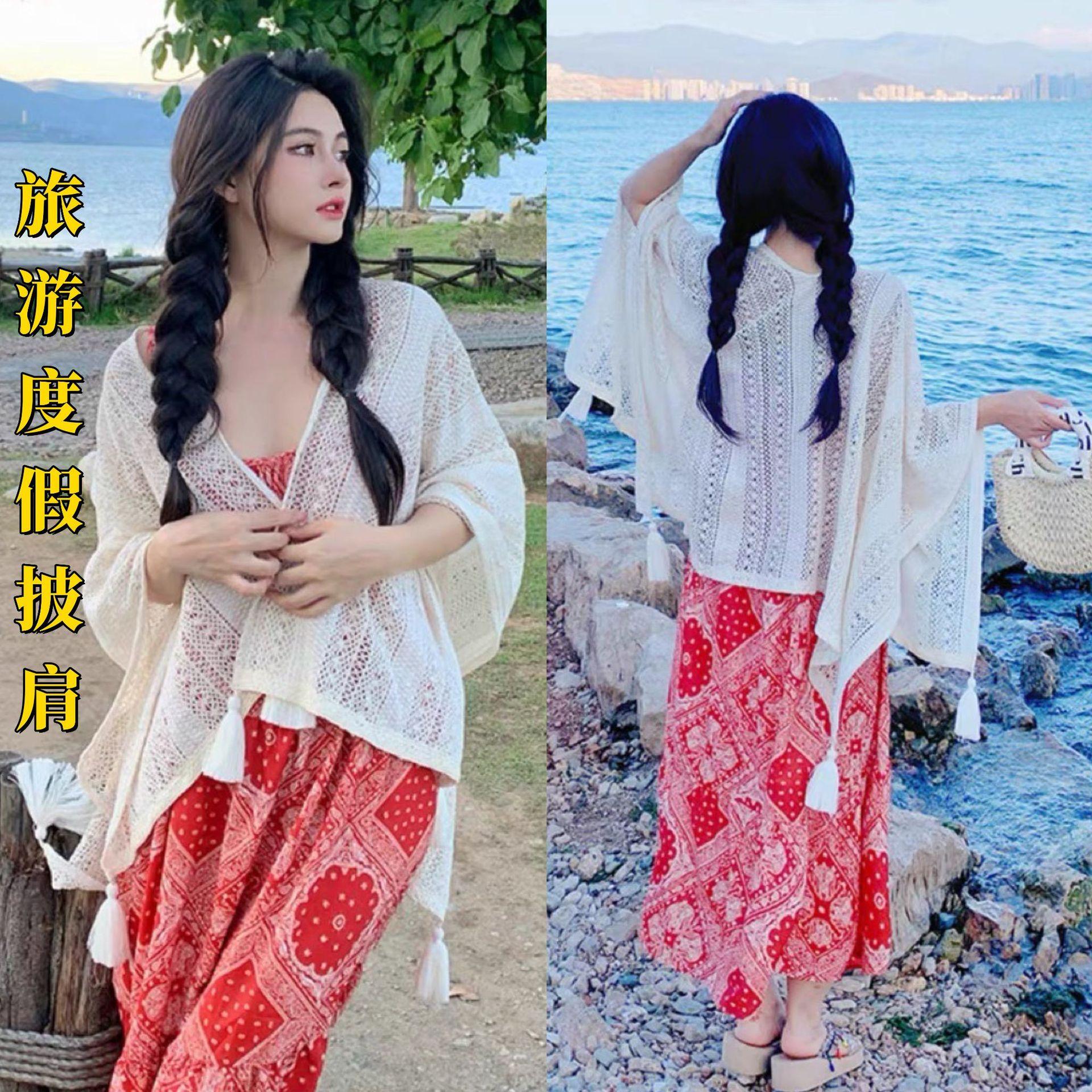 Fotografía de Viaje Yunnan Xinjiang Sanya cárdigan de borlas huecas estilo étnico retro ropa exterior para vestido de playa