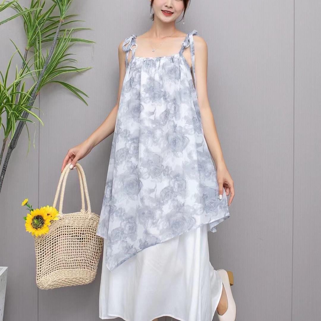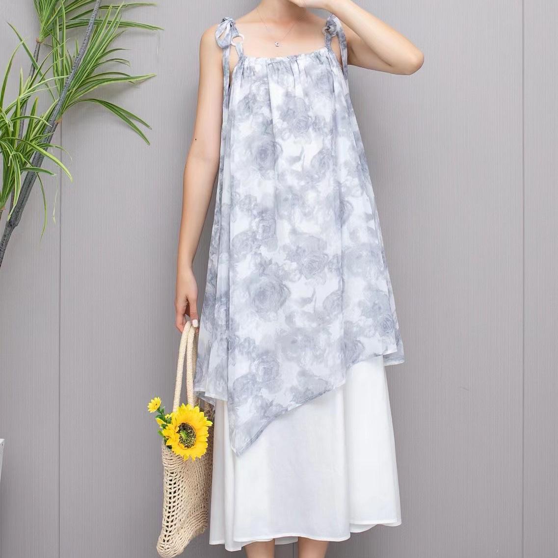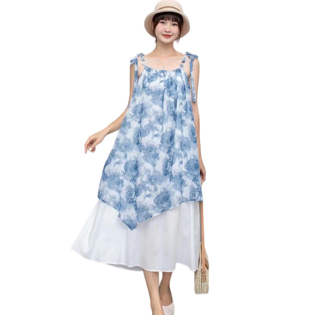 Vestido de tirantes nuevo con forro de algodón estampado de gasa para niña, fresco, suelto, informal, con tirantes, para viaje y playa.