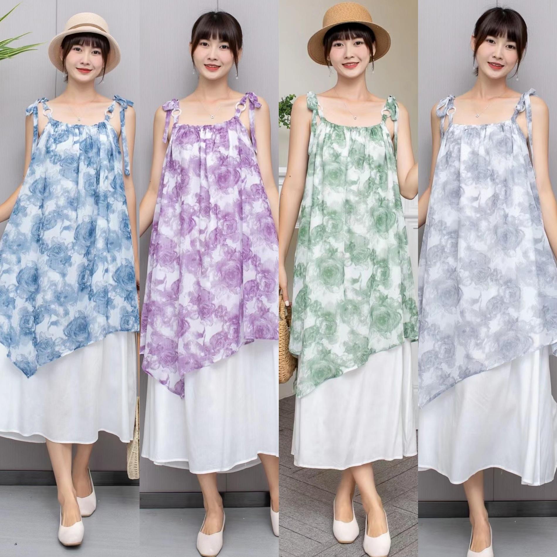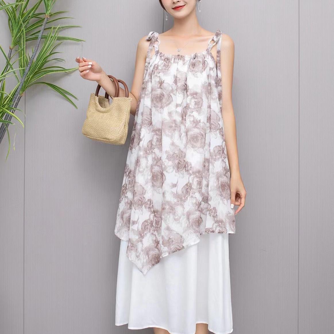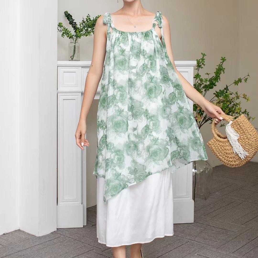 Vestido de tirantes nuevo con forro de algodón estampado de gasa para niña, fresco, suelto, informal, con tirantes, para viaje y playa.