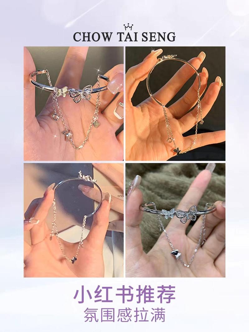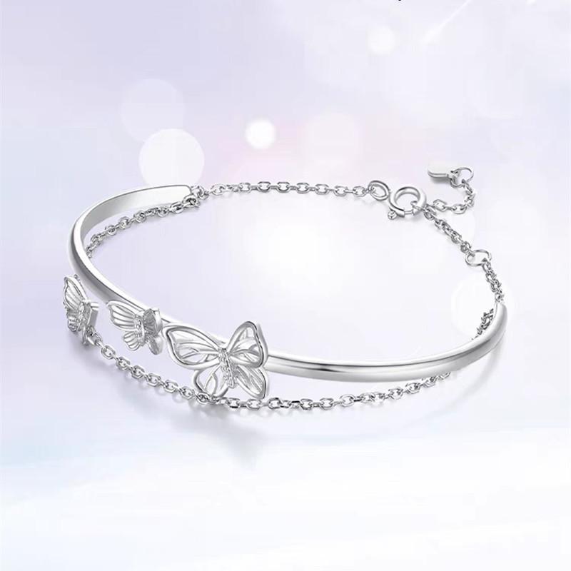 Pulsera de Mariposa de Cobre Blanco Plateado para Transmisión en Vivo de Douyin, Diseño Exquisito de Nicho para Niñas, Pulsera Multicapa, Pulsera, Regalo de Cumpleaños