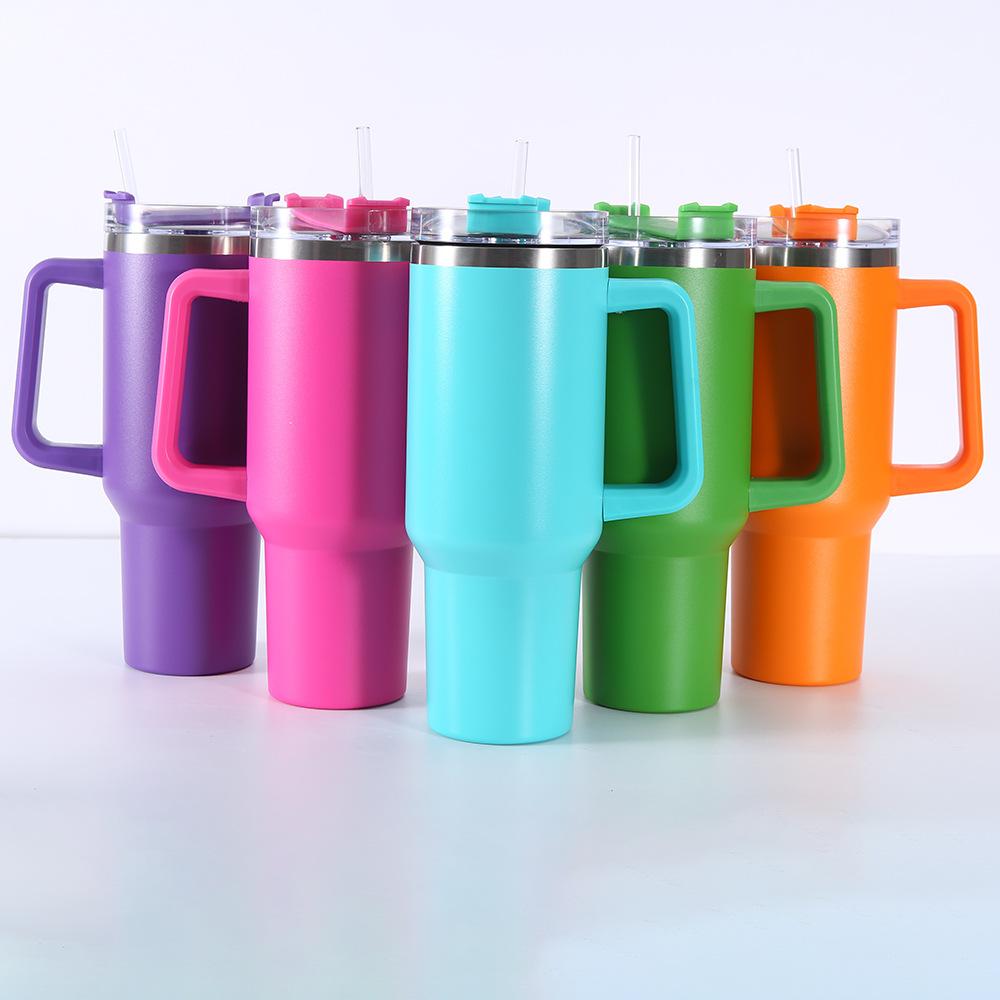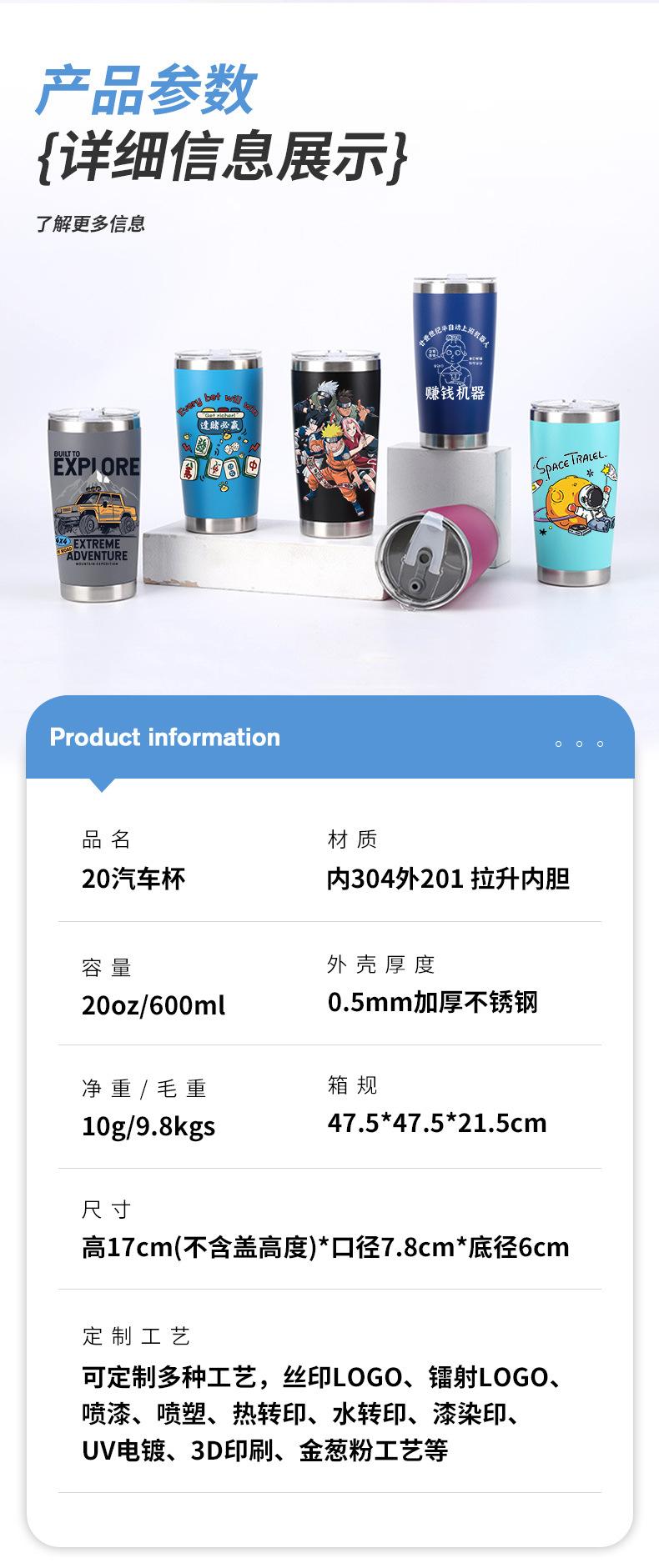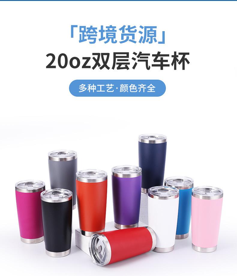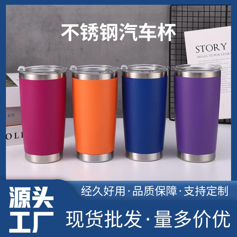 Vaso termo de acero inoxidable transfronterizo 20oz30oz vaso para coche con asa plástico rociado al vacío con tapa vaso para hielo para coche
