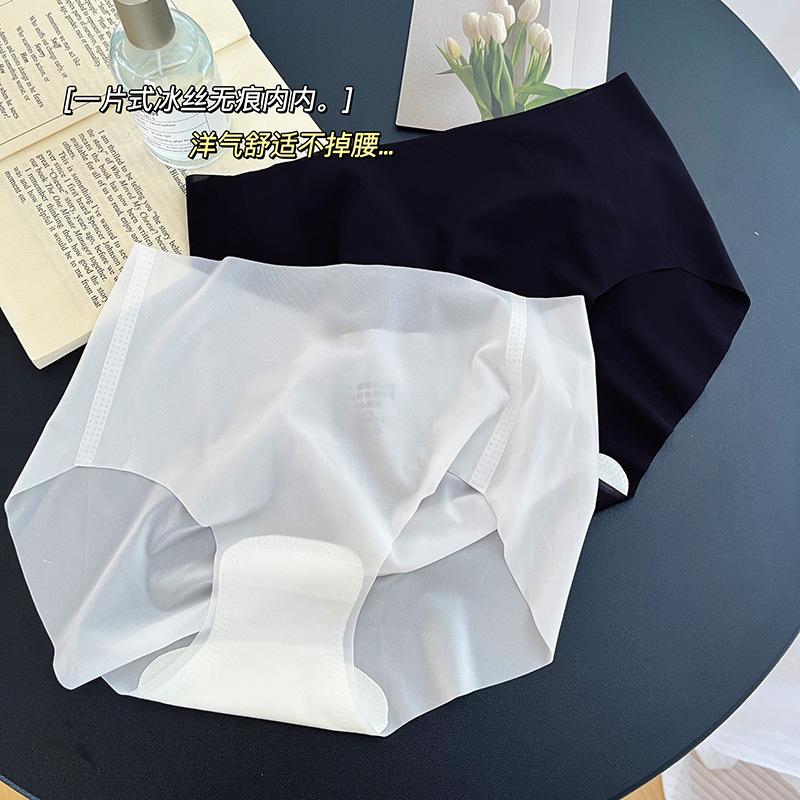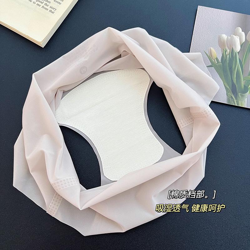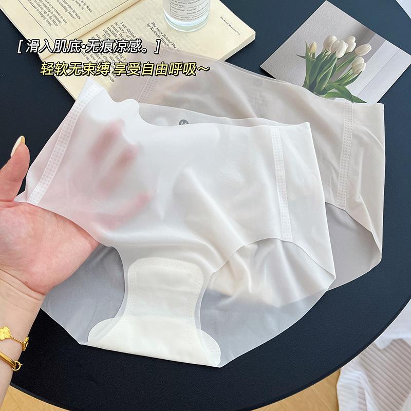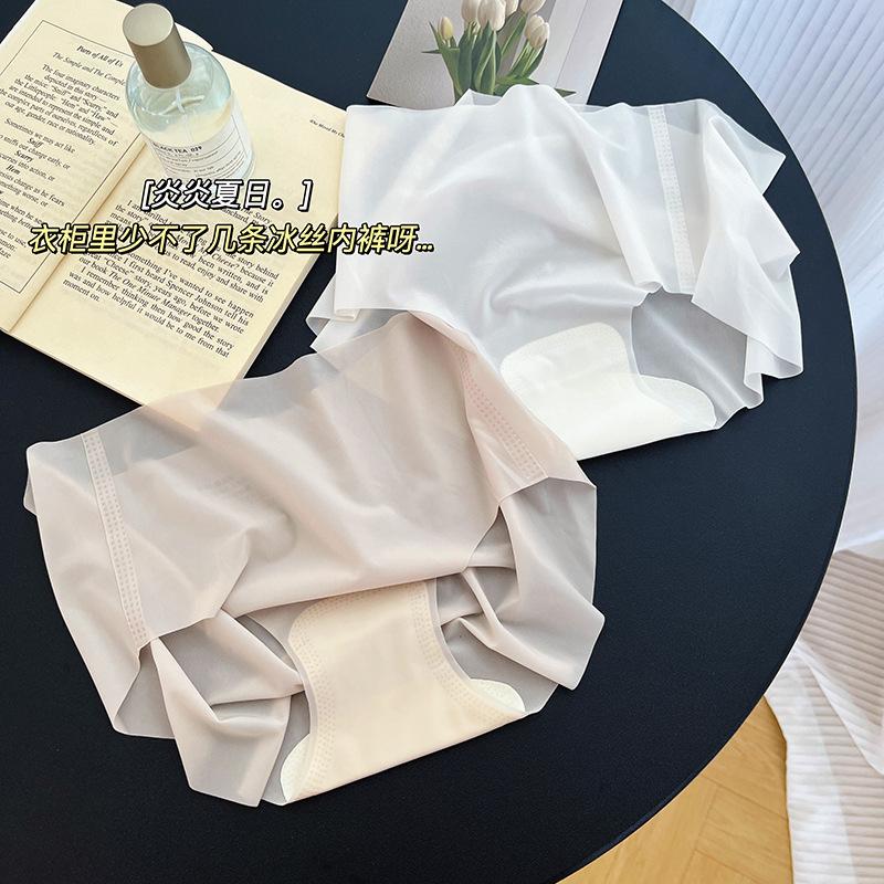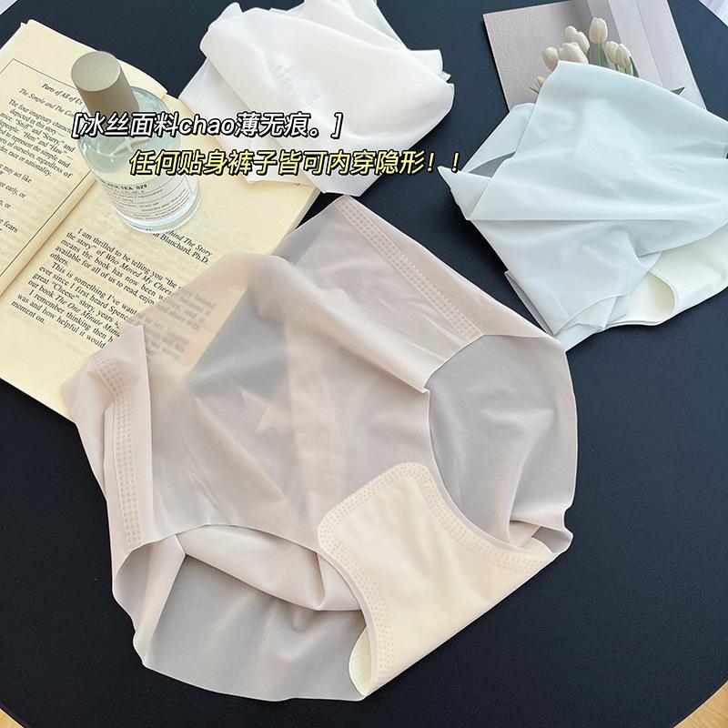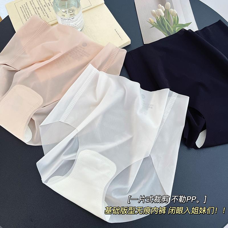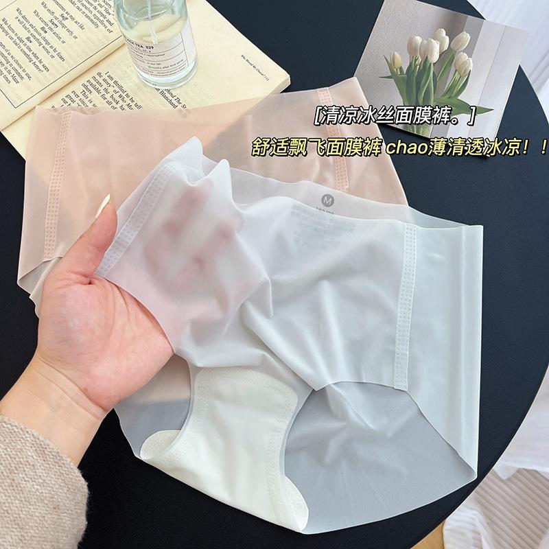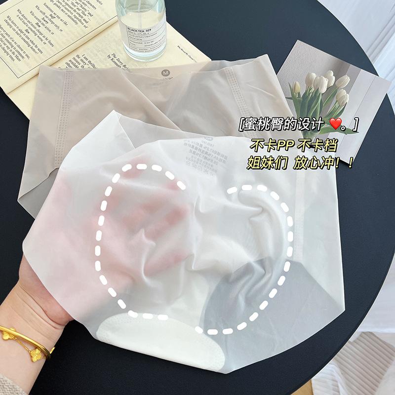 Braguitas de seda helada ultrafinas sin costuras para mujer, diseño 3D de melocotón, con máscara de algodón, transpirables, de cintura media, de una pieza