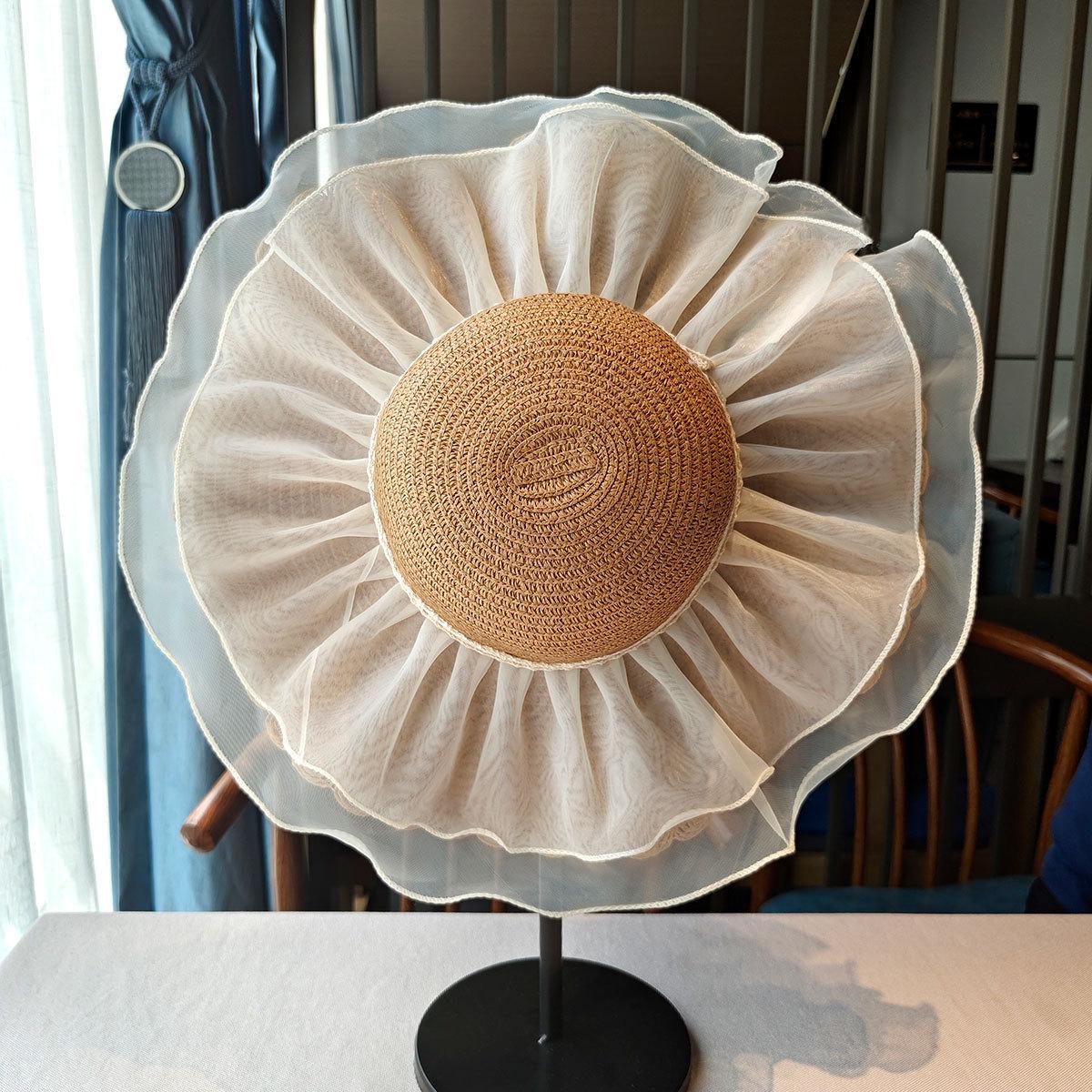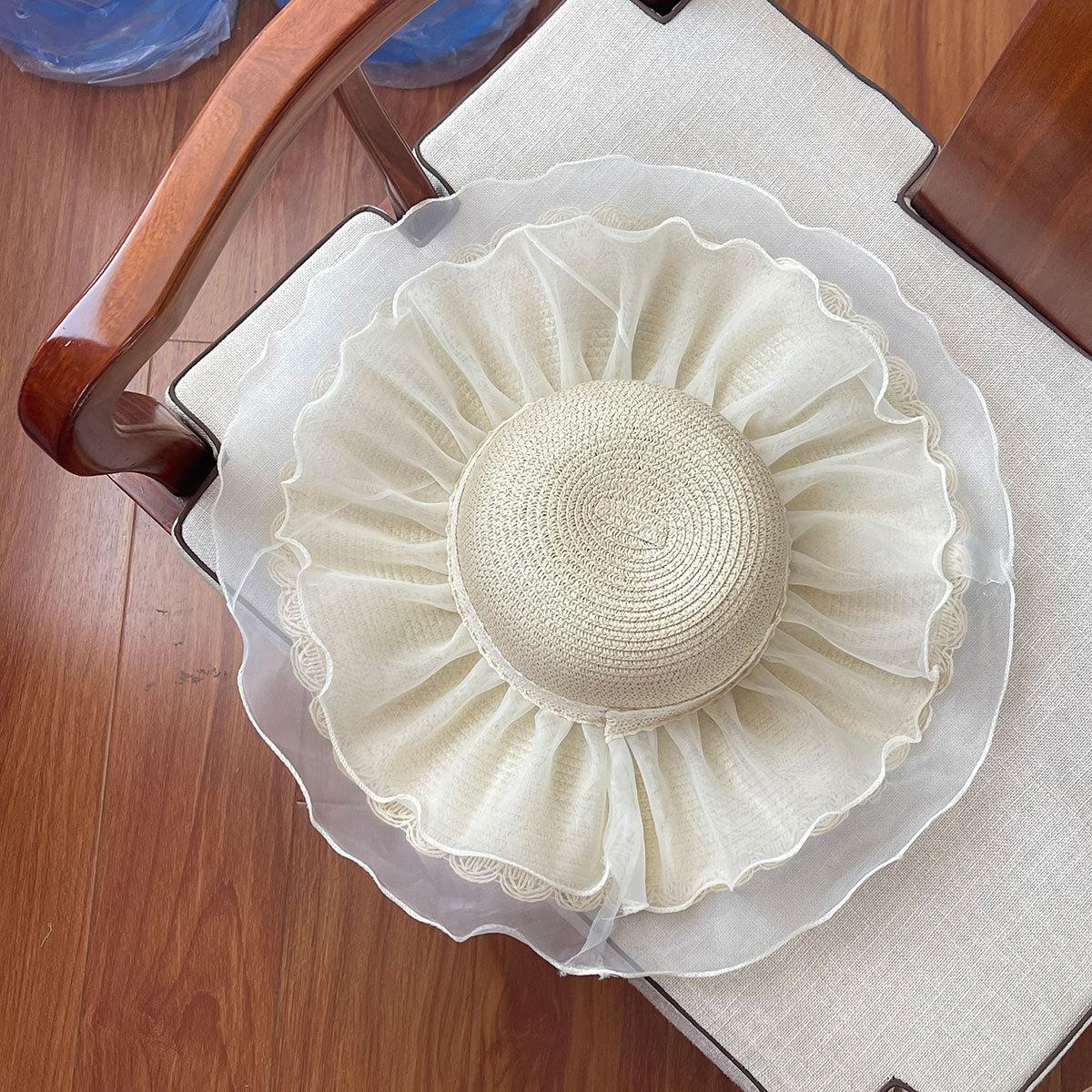 Sombrero de paja de verano con protección solar de malla de súper hada para padres e hijos, sombrero de playa con protección solar para vacaciones, sombrero de hada para mujer