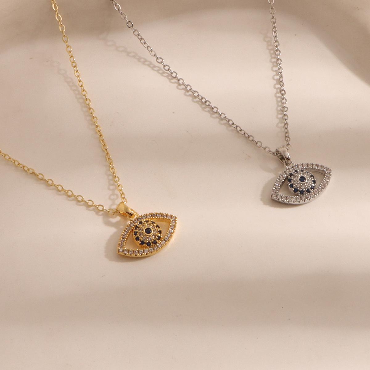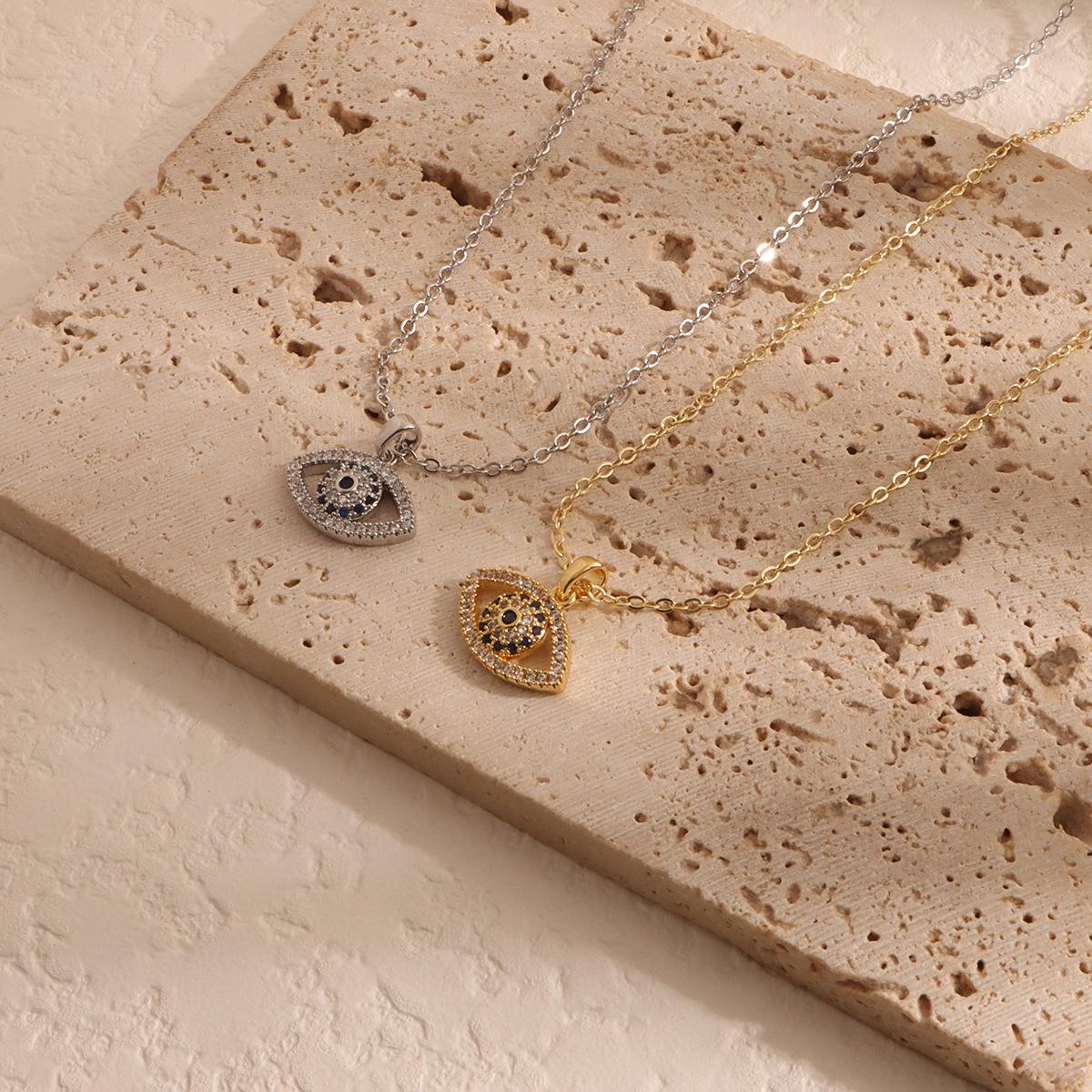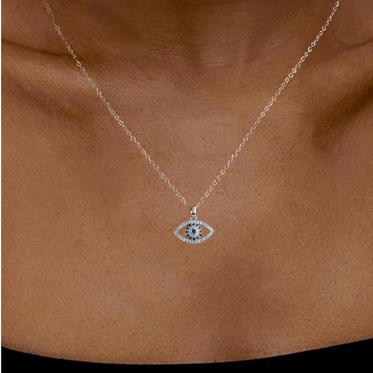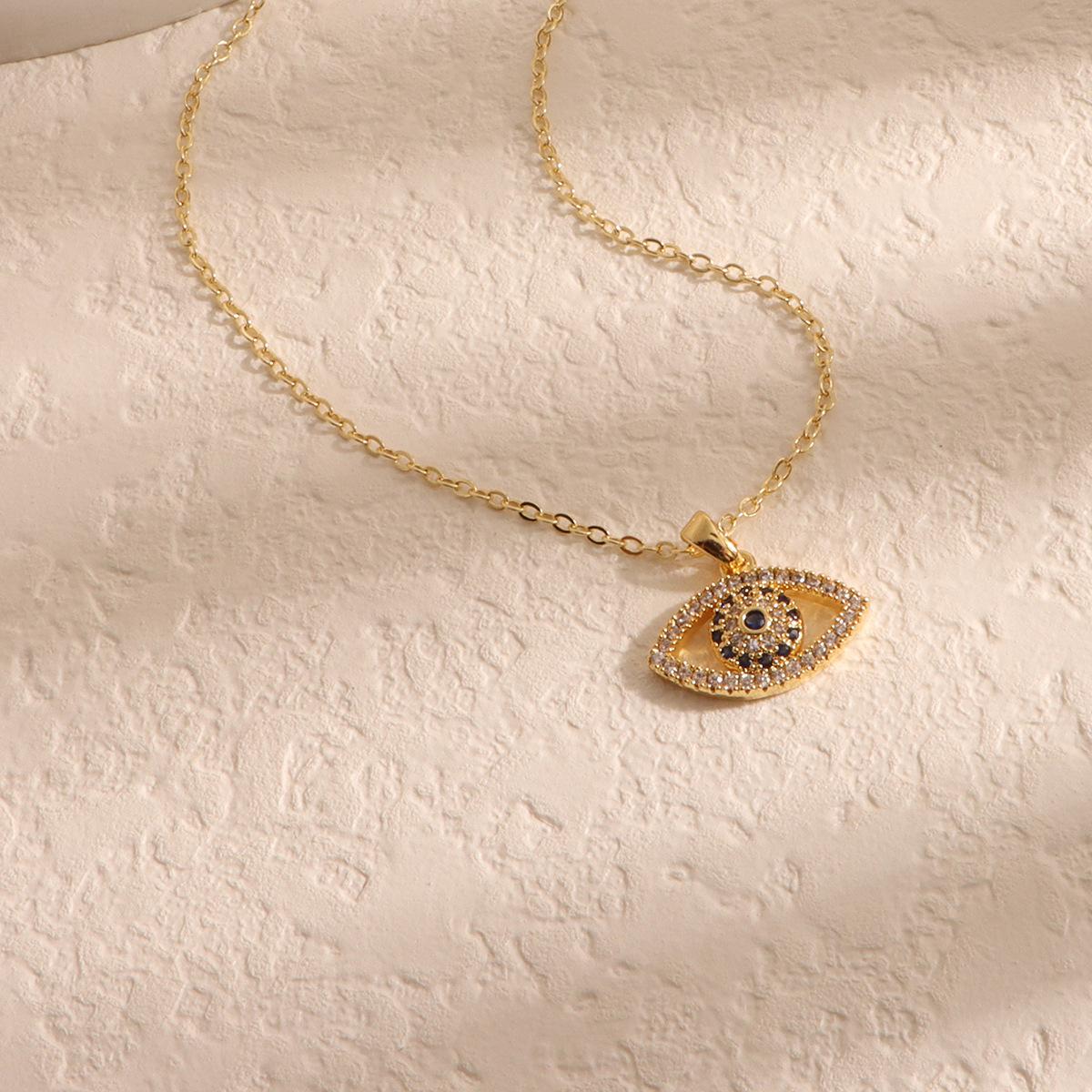 Collar con colgante de ojo de diablo de diamantes, estilo europeo y americano, cadena de clavícula, diseño original, combinable con todo.