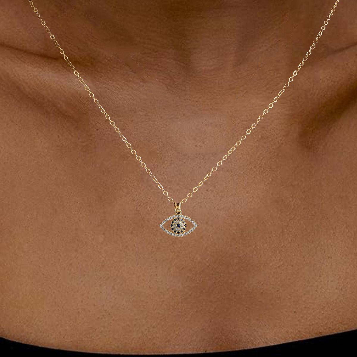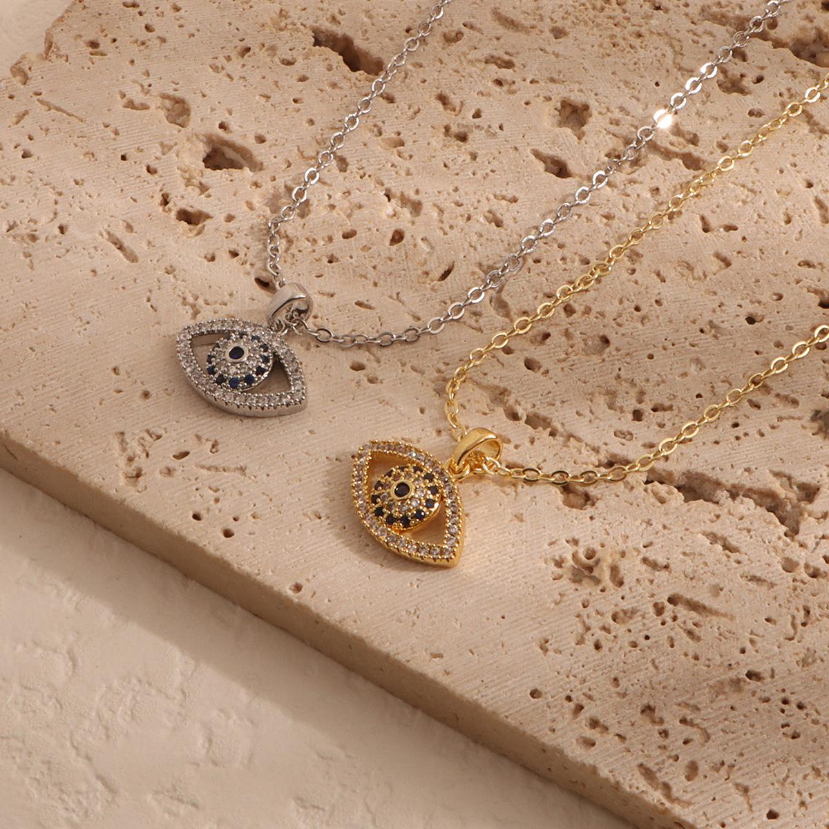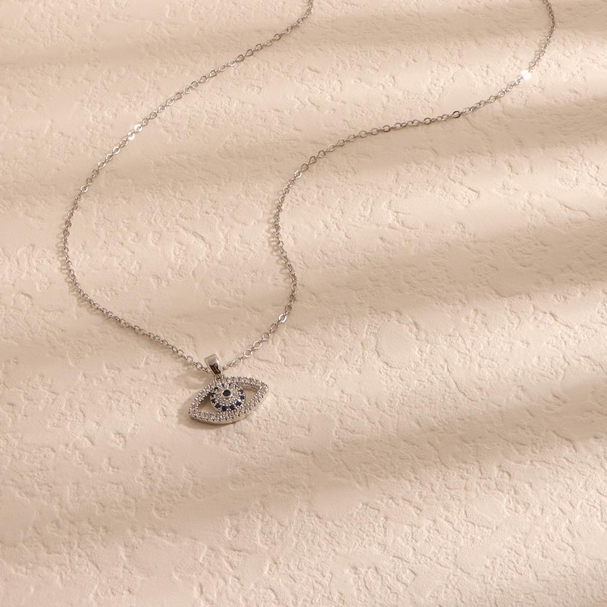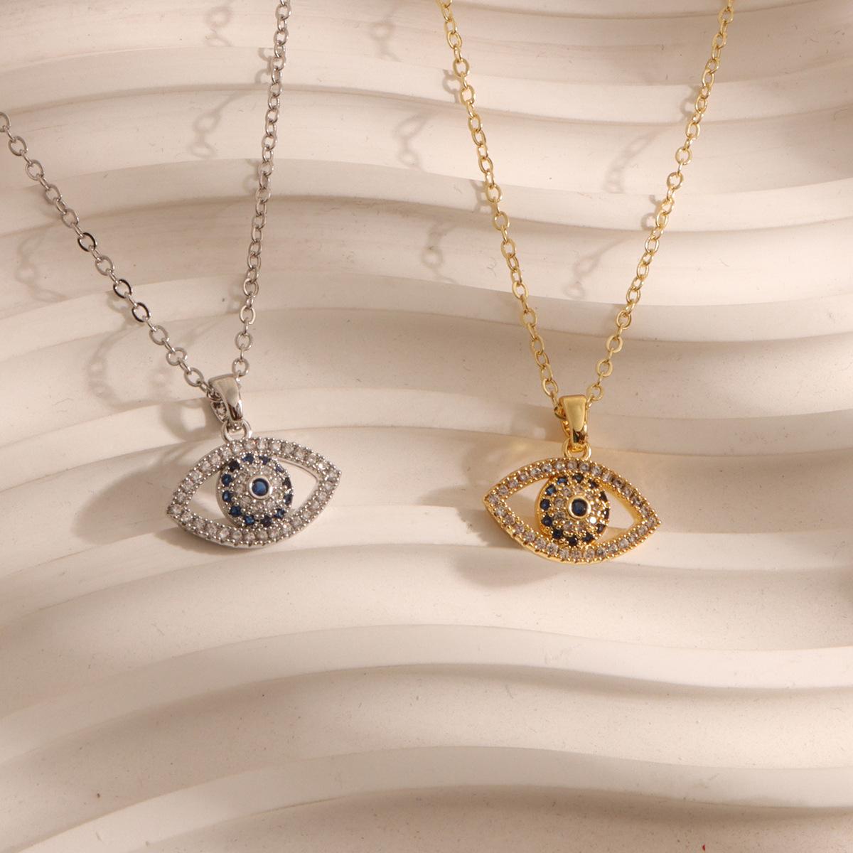 Collar con colgante de ojo de diablo de diamantes, estilo europeo y americano, cadena de clavícula, diseño original, combinable con todo.