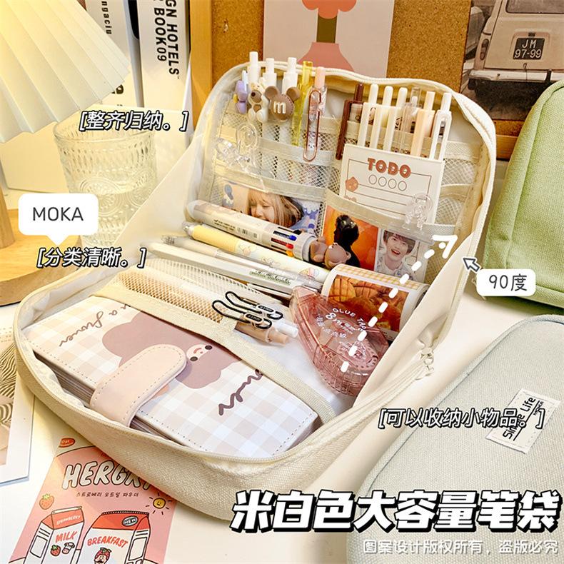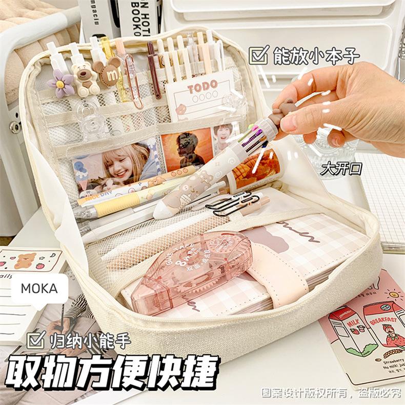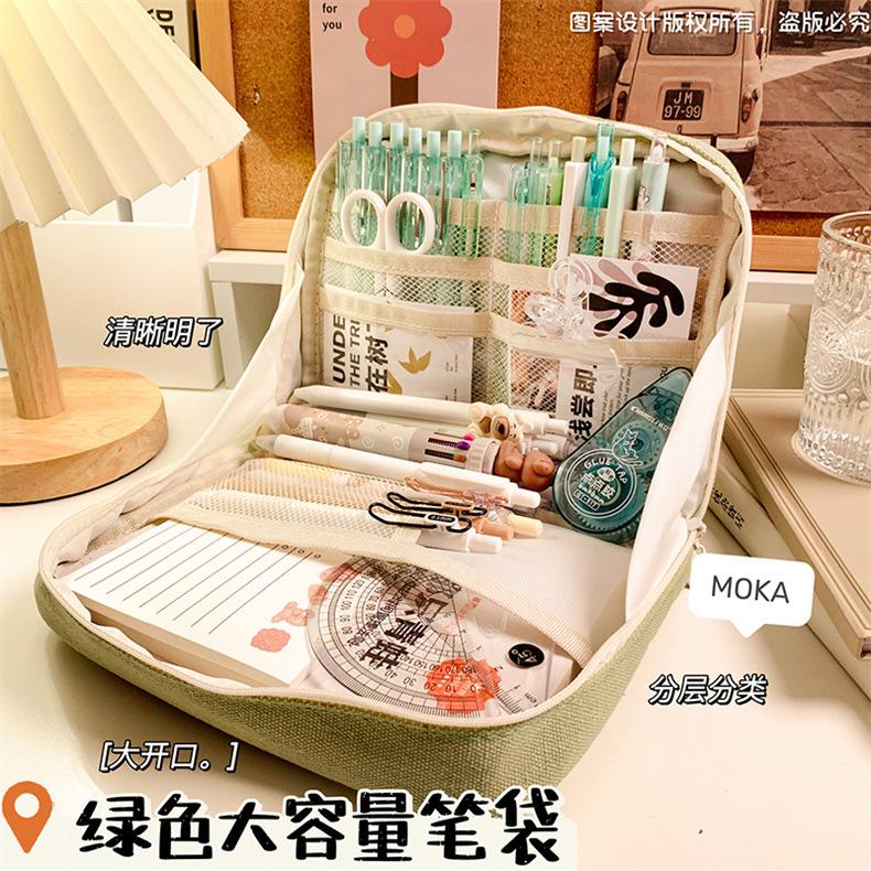 Estuche de lápices de gran capacidad, bolsa de papelería de gran apertura, estuche de lápices multicapa multifuncional, caja de papelería de gran apariencia, simple y fresca