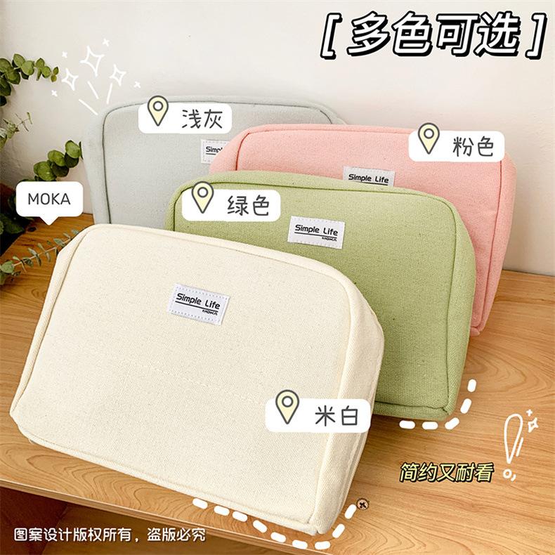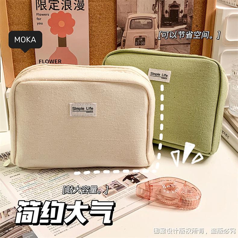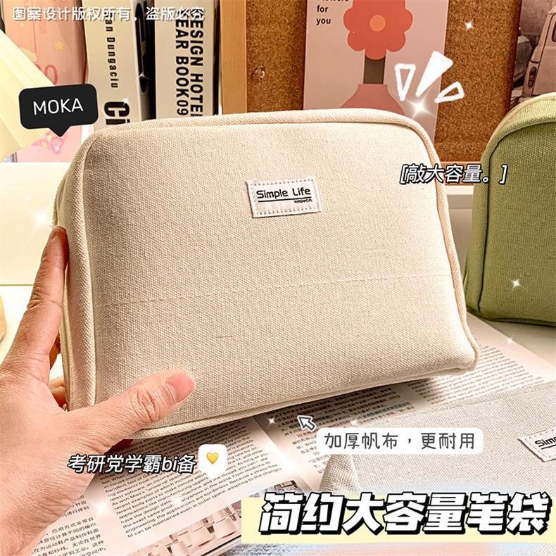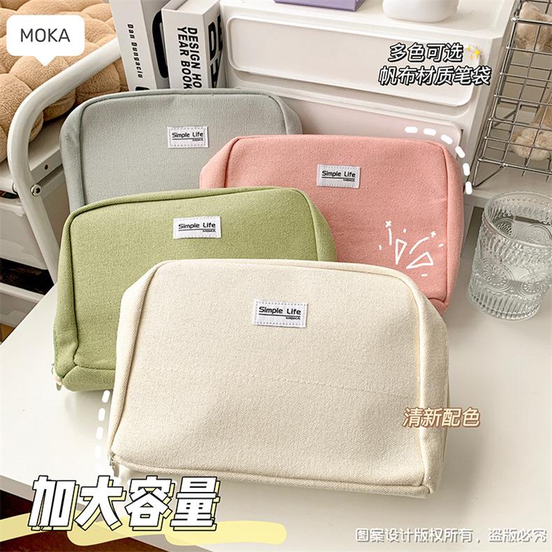 Large opening/canvas pencil case/light gray, Large opening/canvas pencil case/beige, Large opening/canvas penc...