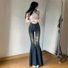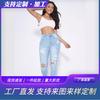 Venta flash Amazon wish jeans de mujer europeos y americanos Sexy Slim ajustados con agujeros pantalones acampanados