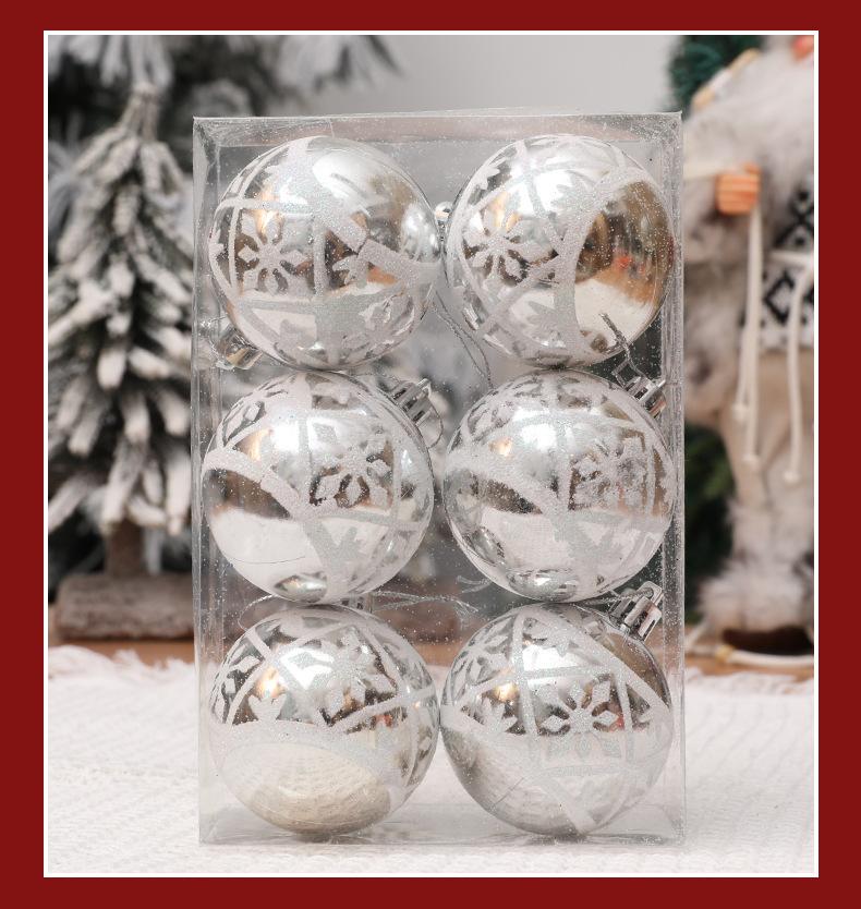 Bola navideña de plástico galvanizado, pintada a mano, con diseño de copos de nieve a cuadros, de 6 cm, para decoración de fiestas.