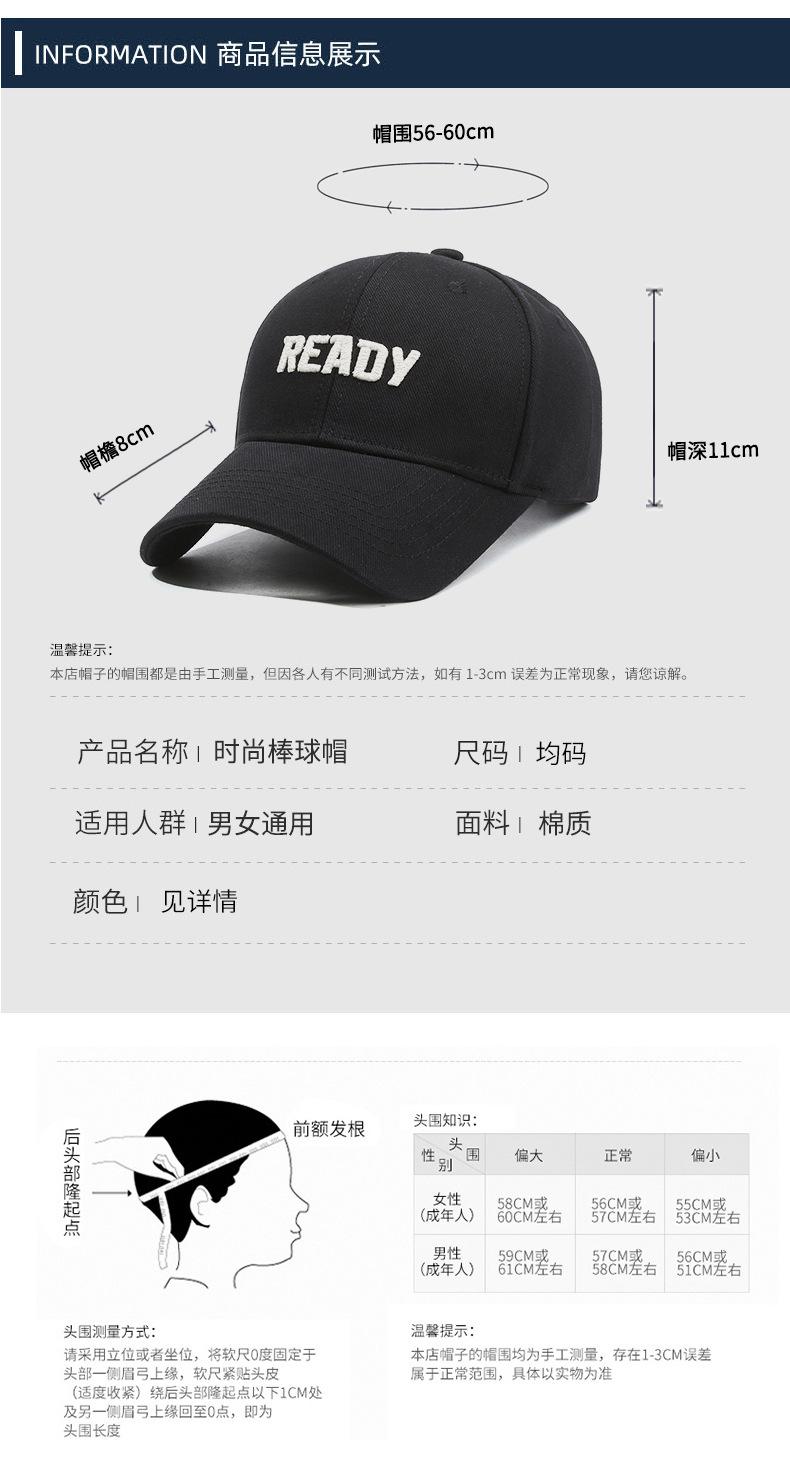 Gorra de verano para mujer, de algodón puro, para hombre, con protección solar, transpirable, con cabeza grande, parte superior rígida y letras bordadas.