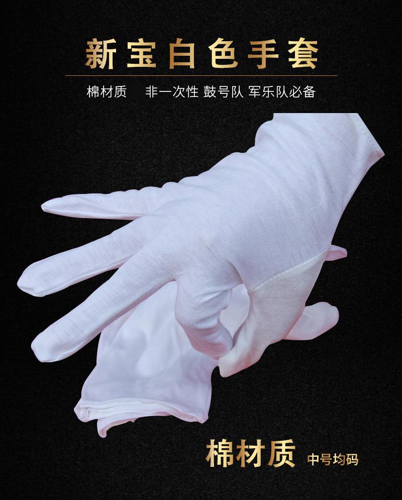 Guantes Xinbao, banda de tambores y gongs, guantes blancos, banda militar, accesorios para tambores de guardia de honor, guantes de algodón con tubo de cobre