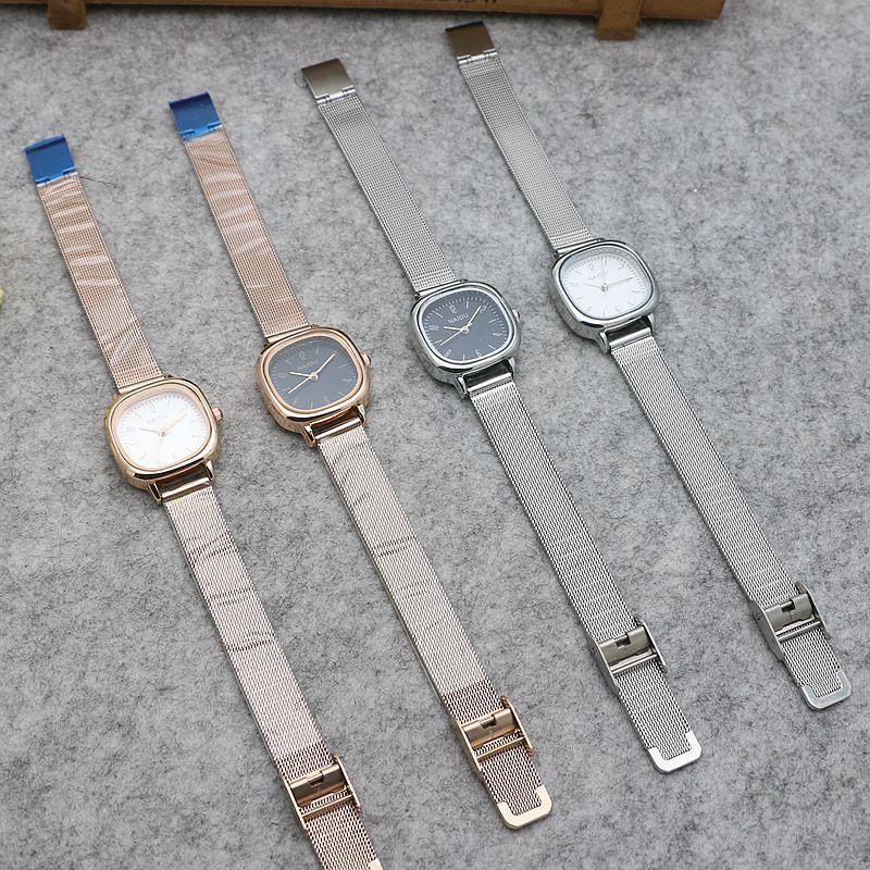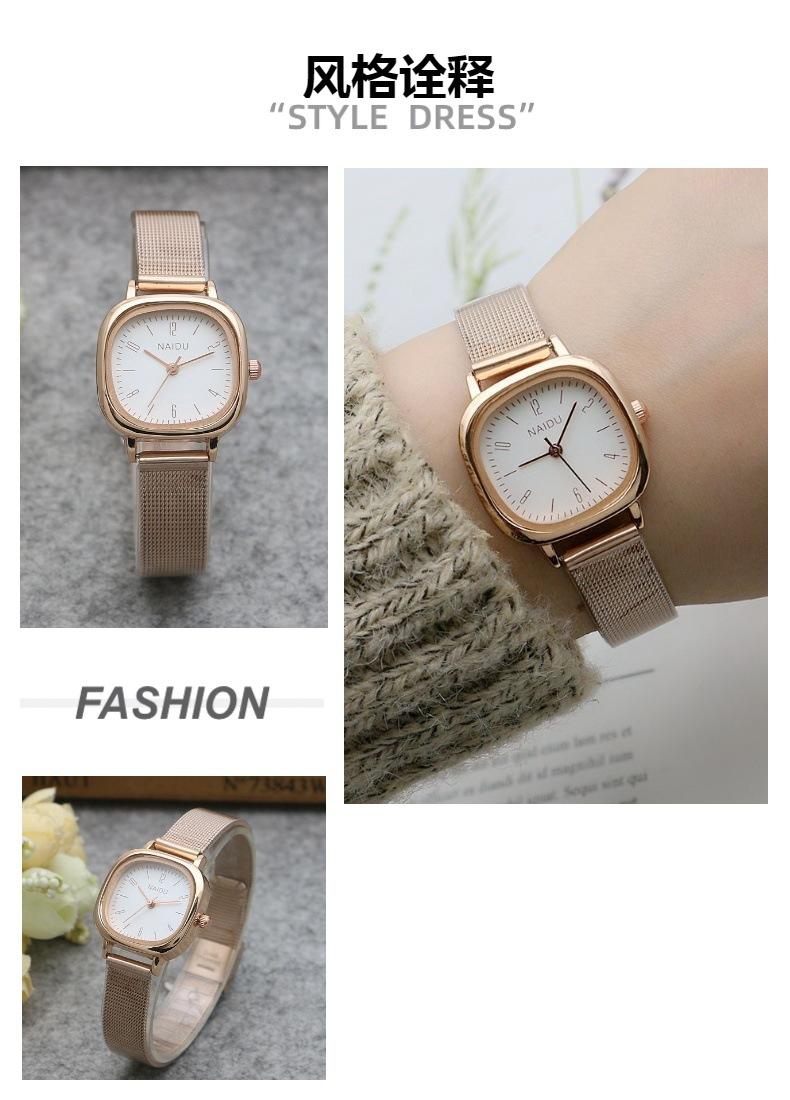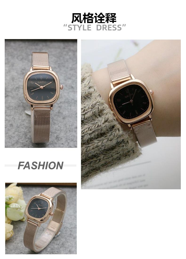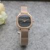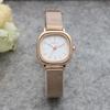 Reloj Ovalado de Lujo Ligero con Correa de Malla Tejida Color Oro Rosa, Reloj de Moda para Niña, Reloj de Cuarzo Mori
