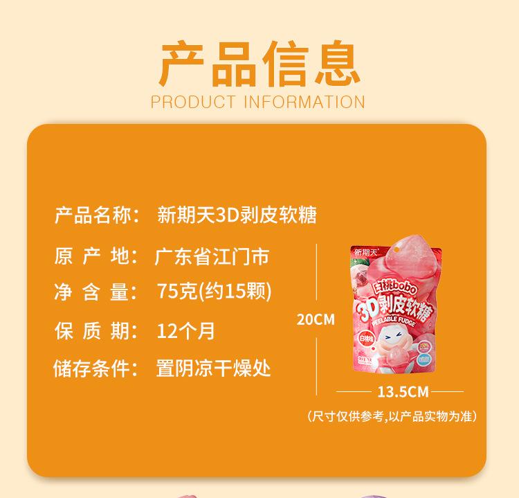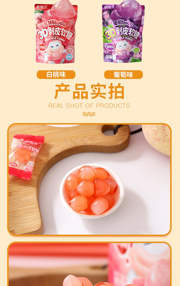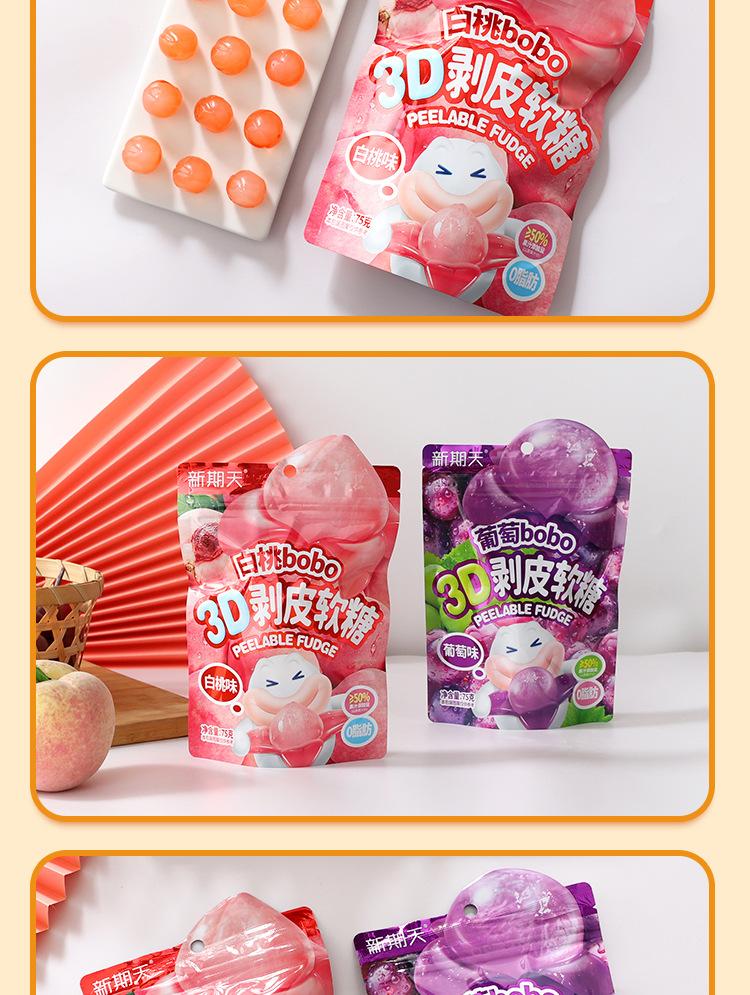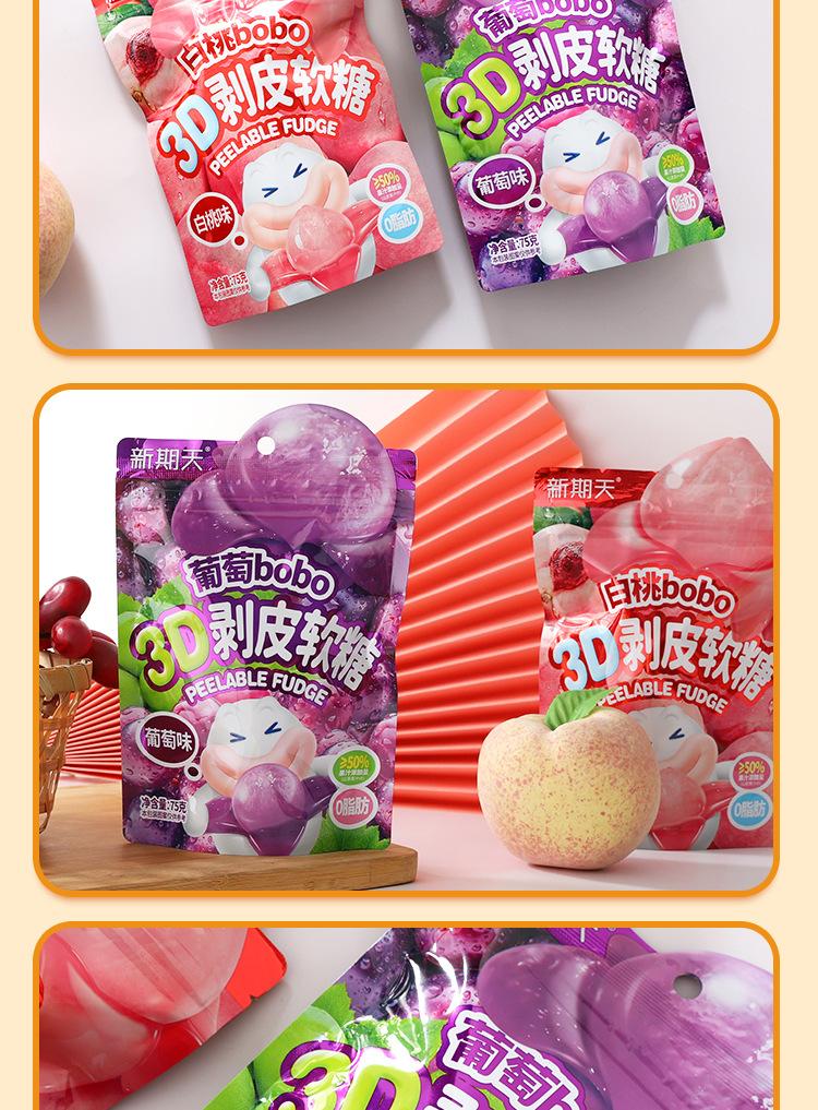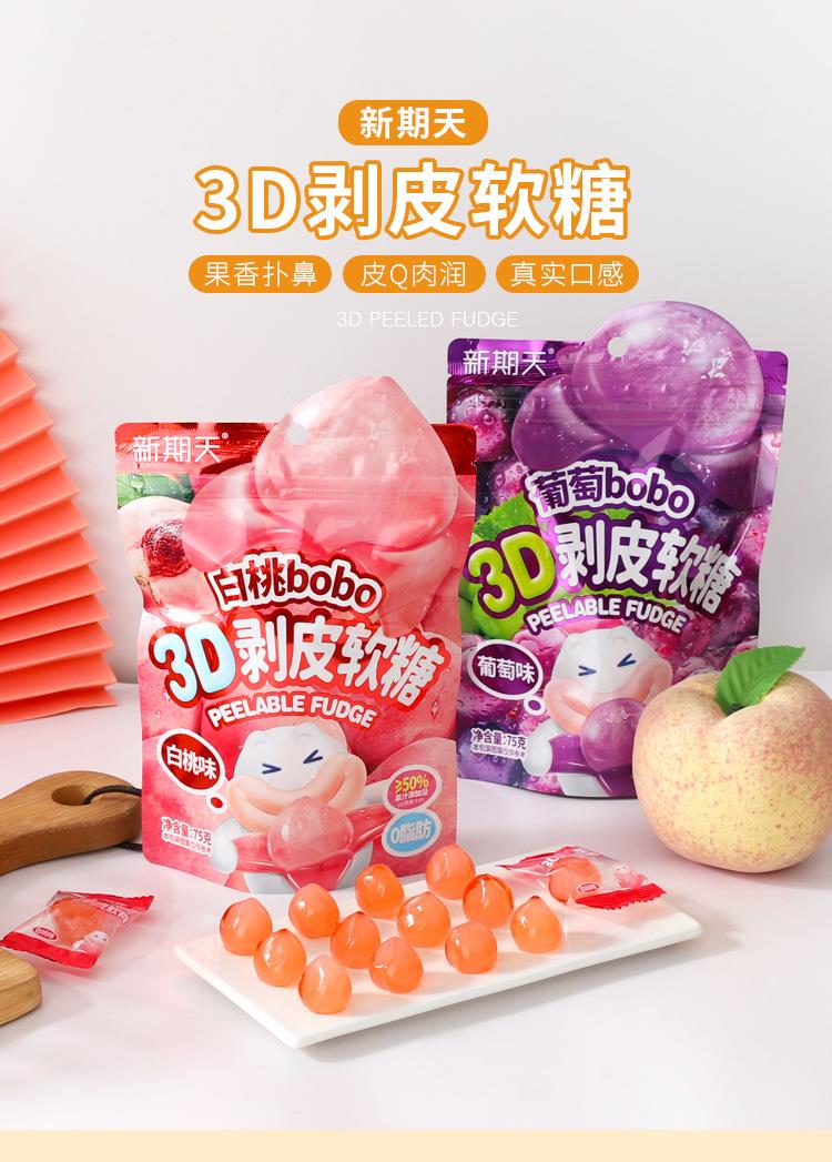 Nuevo Número Día Gomitas Peeling 3D Sabor Durazno Blanco Uva Sándwich Gomitas de Jugo de Fruta Snacks Divertidos para Niños Venta al por Mayor
