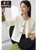 Zhen Xi Nuevo Abrigo Corto de Mujer de Manga Larga con Costuras, Cuello Redondo, Lentejuelas, Tejido Slub, Estilo Chanel Pequeño, Chaqueta Recta CP581