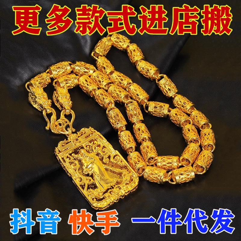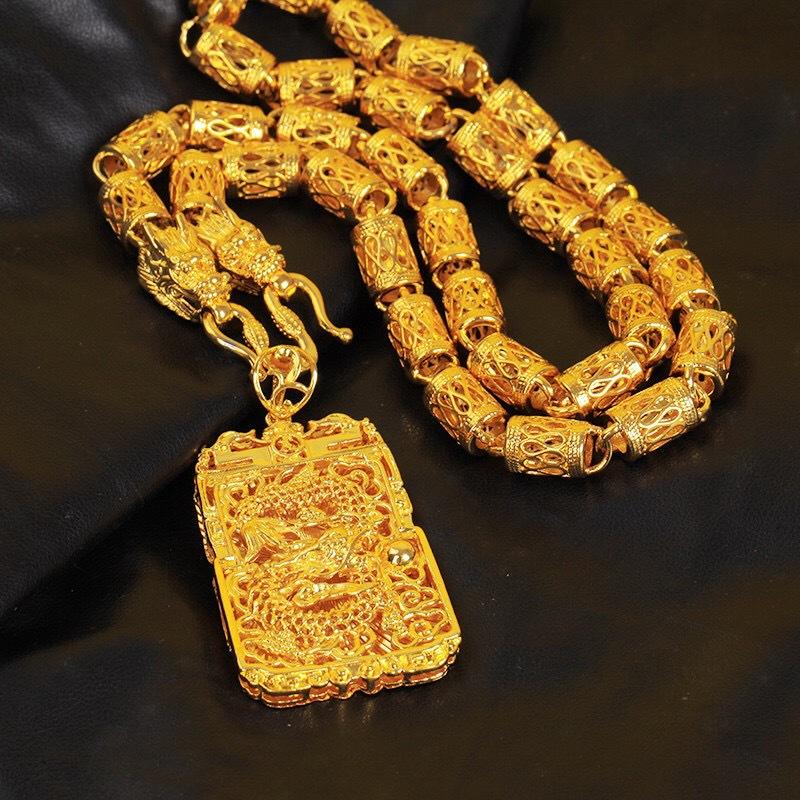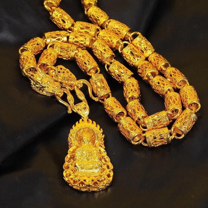 Collar de bambú Shajin de Vietnam, colgante de dragón Guanyin de Guan Gong agresivo para hombres, cadena alargada y audaz de héroe local en vivo