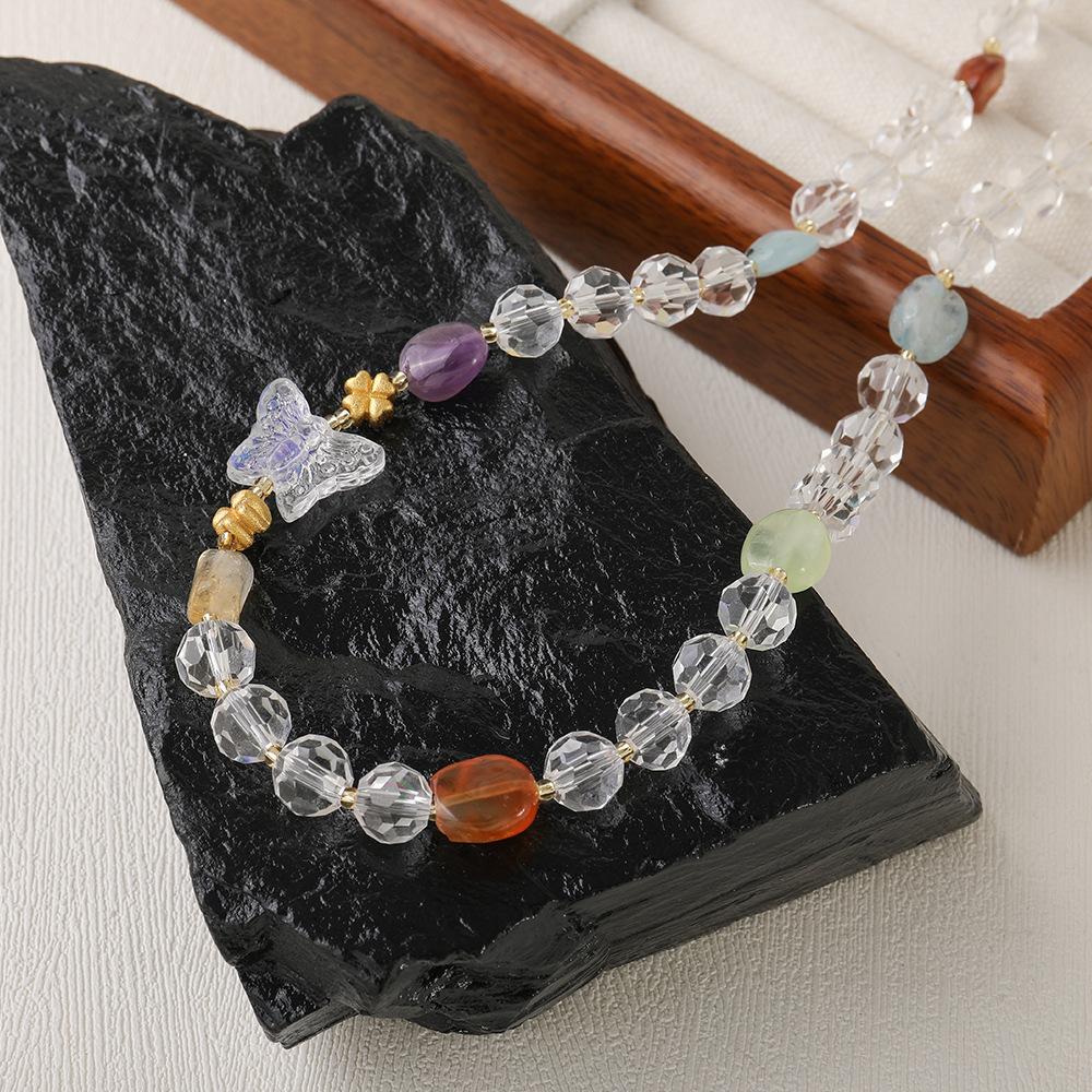 Collar de Cuentas de Ágata Roja de Mariposa para Mujer, Pulsera Shore Koi de Cristal Blanco Natural para Combinar con Todo, Joyería Nicho de Lujo Ligero