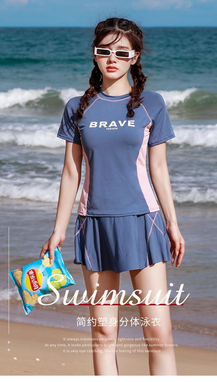 Traje de baño dividido para mujer, deportivo, explosivo, ajustado, que cubre el vientre, a la moda, conservador, con falda de pecho pequeño, traje de baño de aguas termales, venta al por mayor