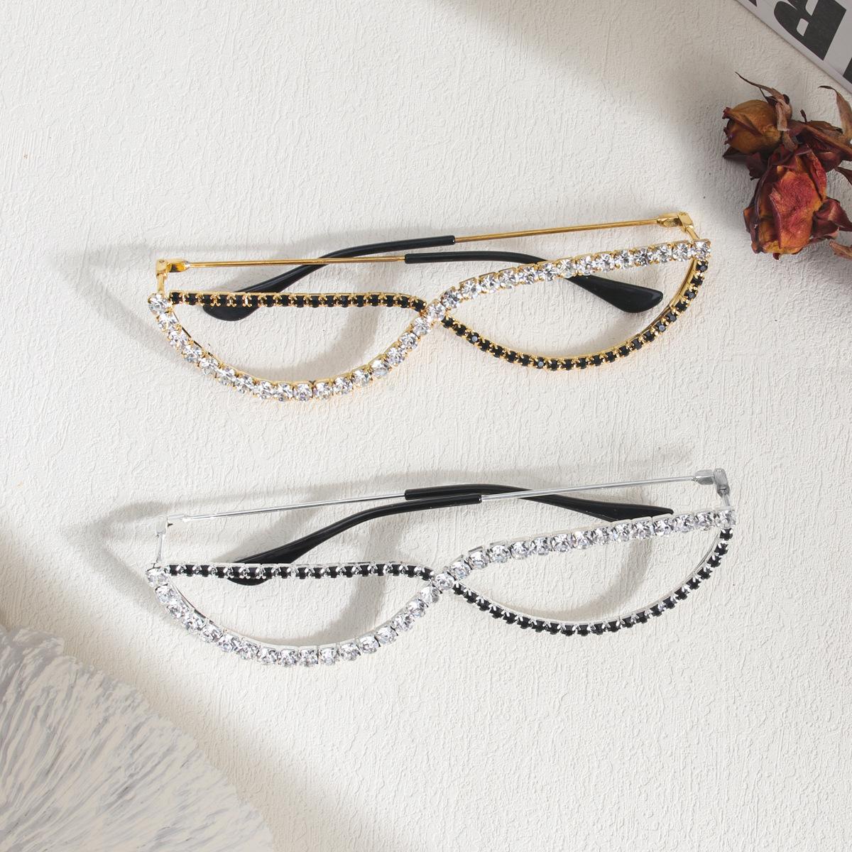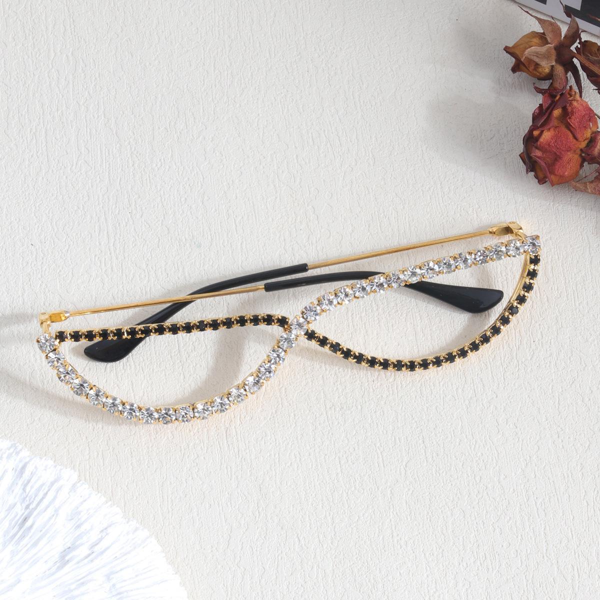 Gafas de sol de media montura con diseño de personalidad y temperamento, con montura decorativa de diamantes exagerados y de gran venta transfronteriza entre Europa y Estados Unidos para mujer