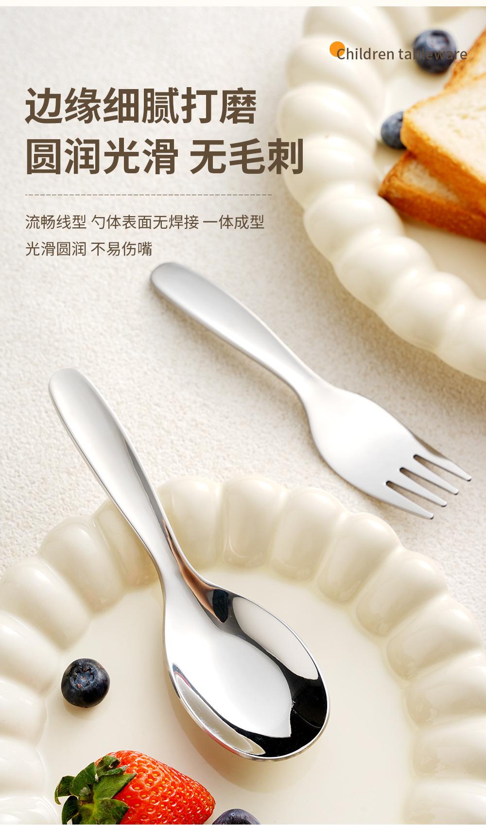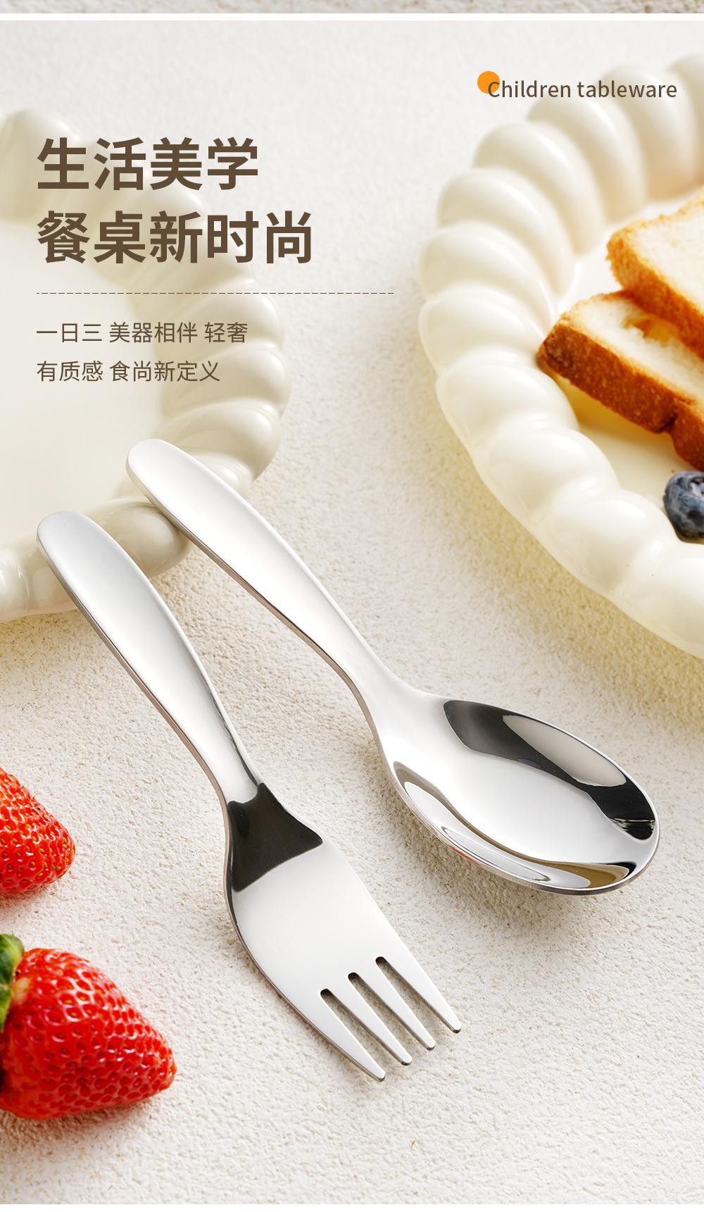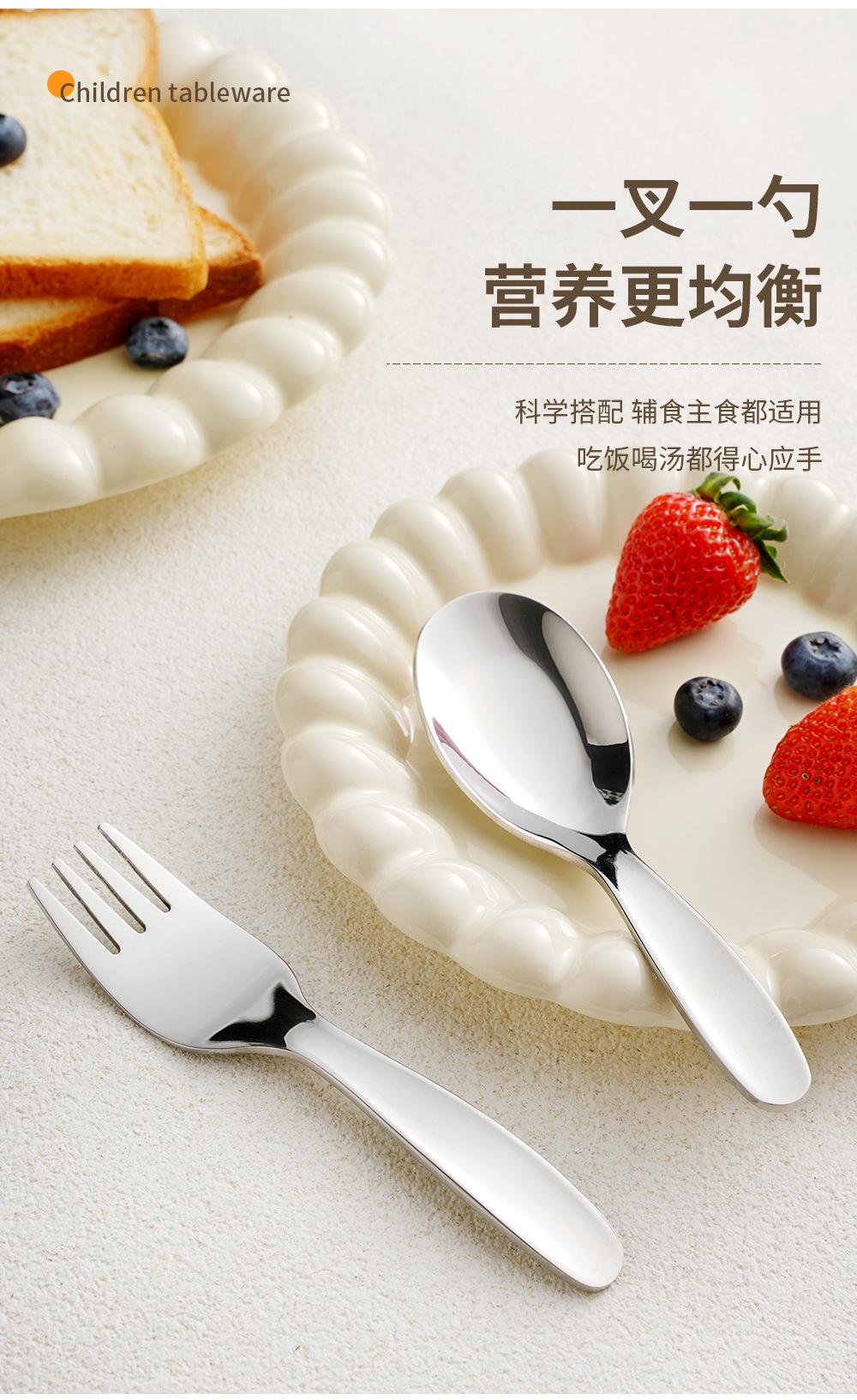 Cuchara y tenedor de acero inoxidable 316 para niños, tenedor y cuchara 304, vajilla para bebés, cuchara pequeña y gruesa, tenedor para fruta