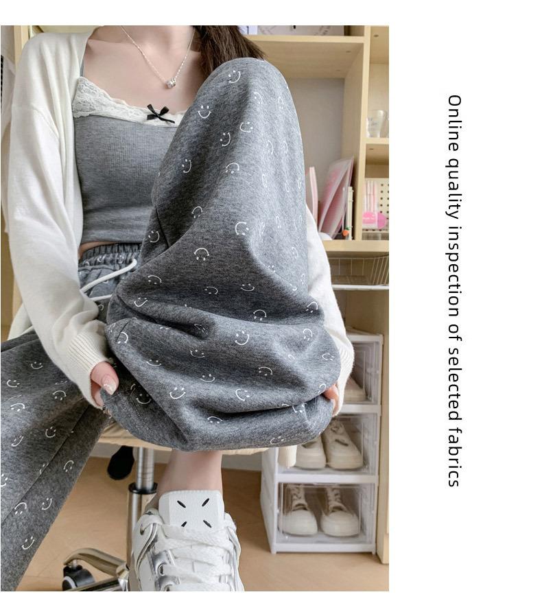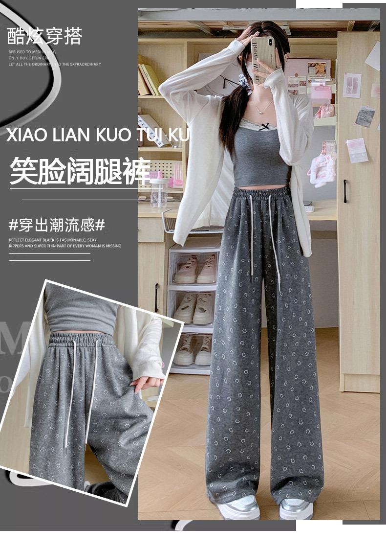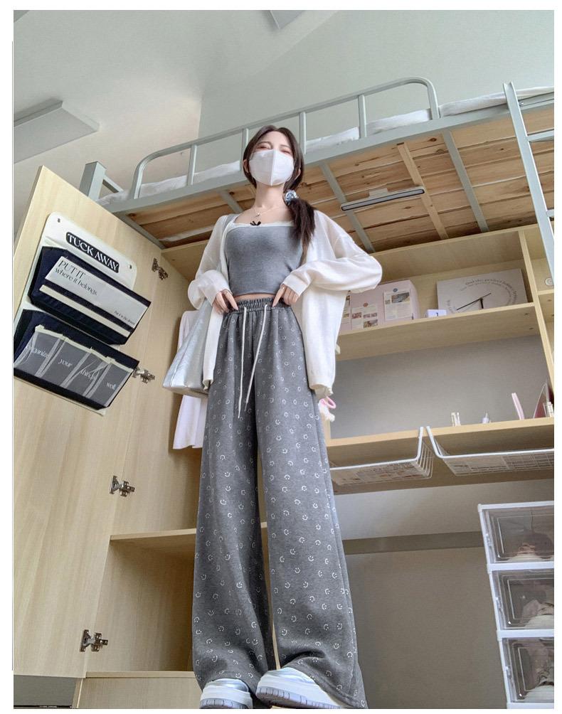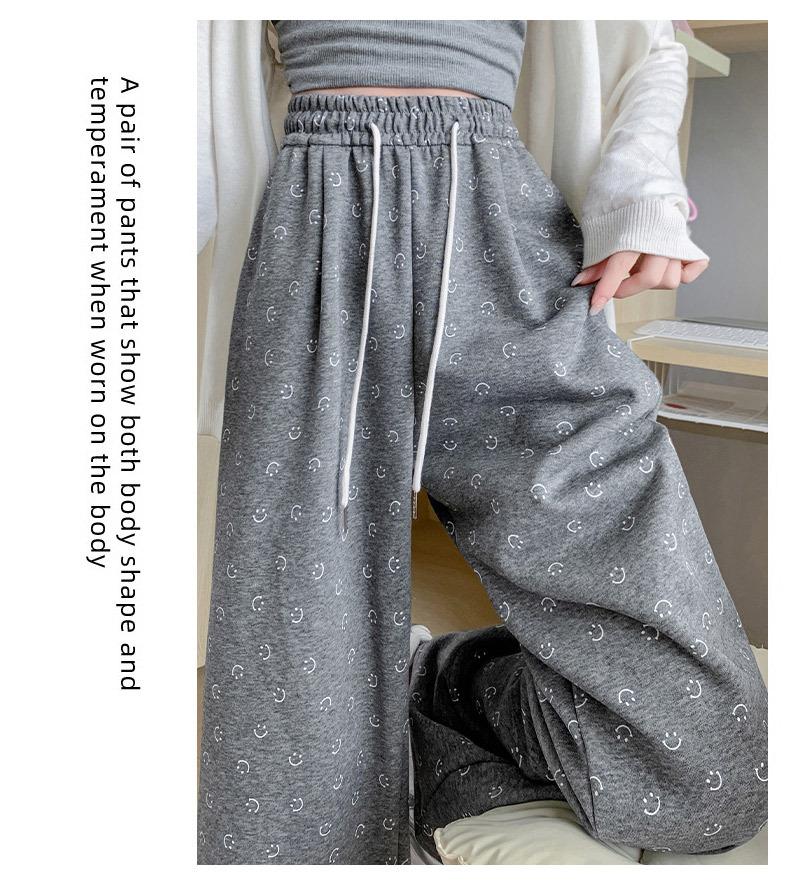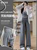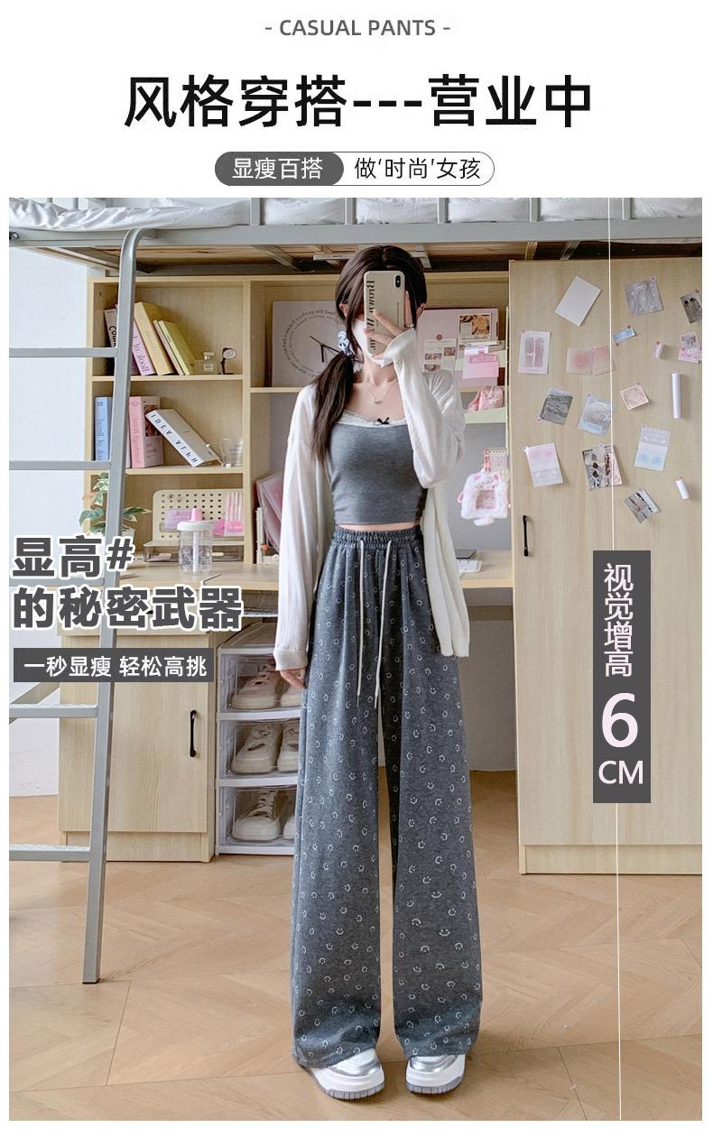 Pantalones de chándal grises 2025 Nuevo estilo Estilo holgazán Pantalones de pierna ancha para mujer Primavera y otoño Cintura alta Slim Recto Casual Pantalones de chándal
