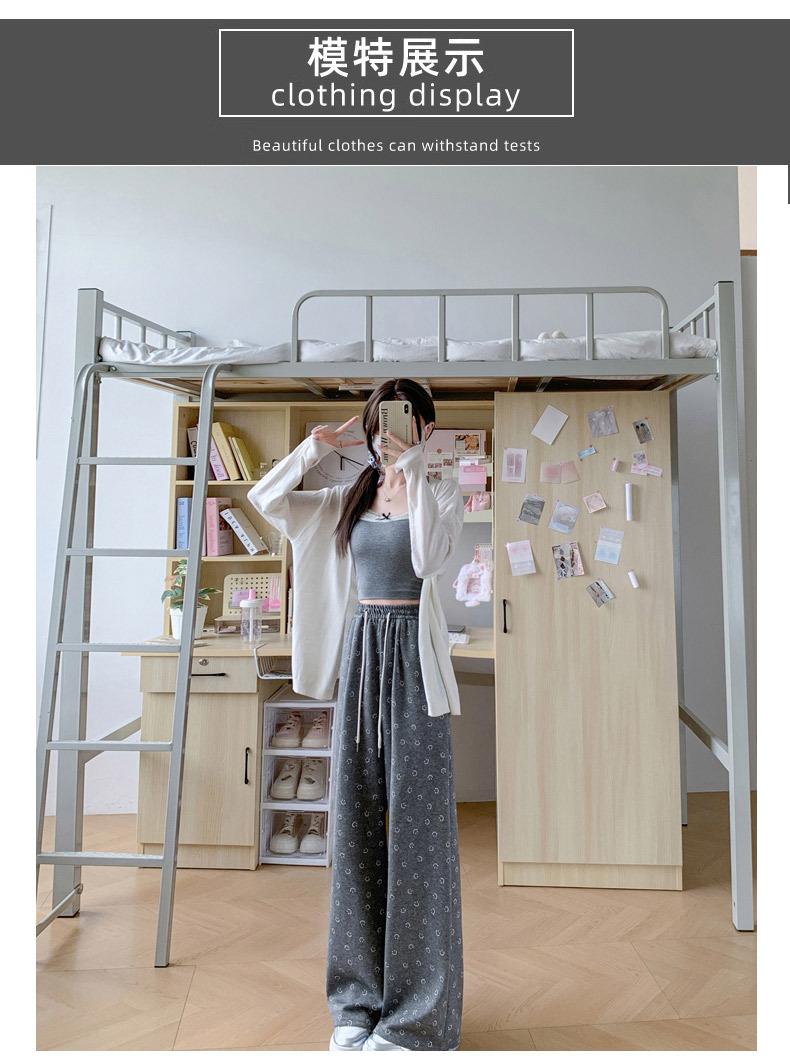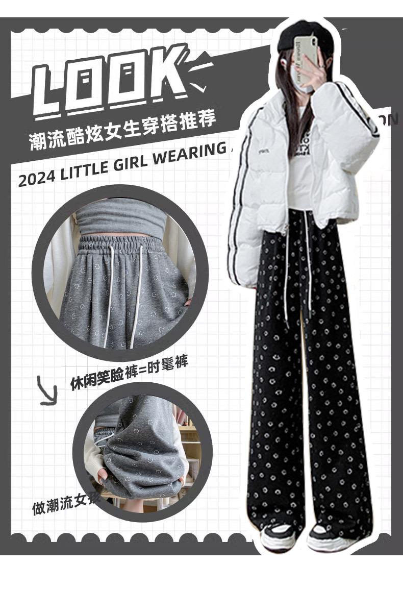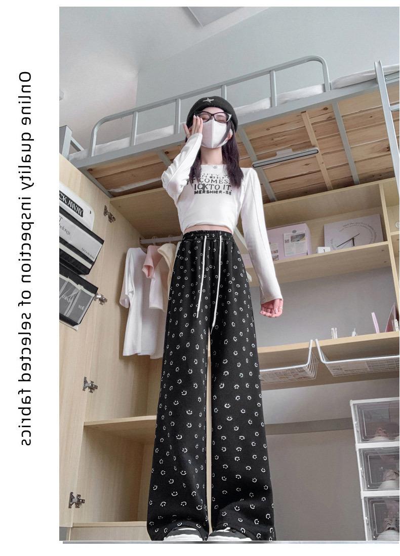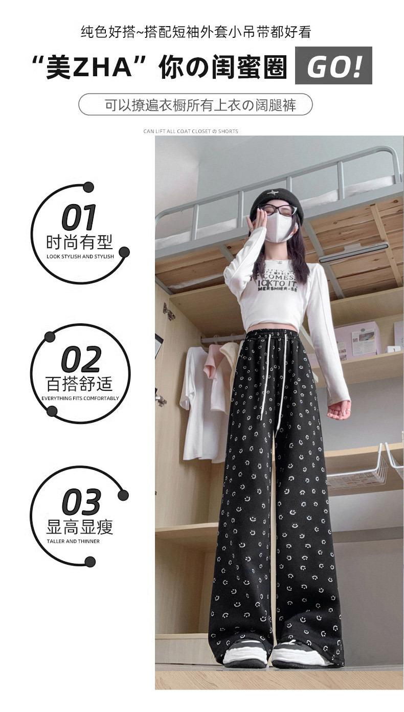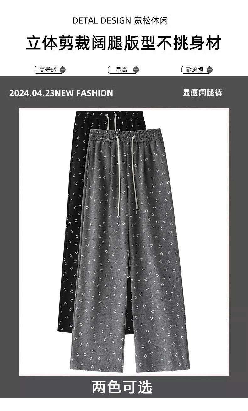 Pantalones de chándal grises 2025 Nuevo estilo Estilo holgazán Pantalones de pierna ancha para mujer Primavera y otoño Cintura alta Slim Recto Casual Pantalones de chándal