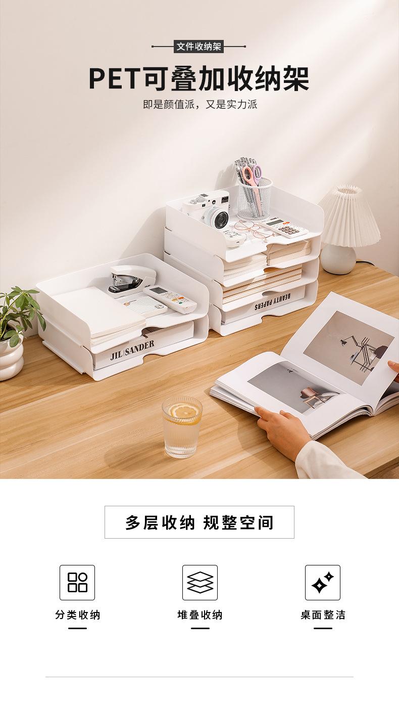 Caja de almacenamiento de escritorio de oficina, carpeta A4, estante de almacenamiento multicapa, estante de datos, estante de archivos, estante de almacenamiento apilable