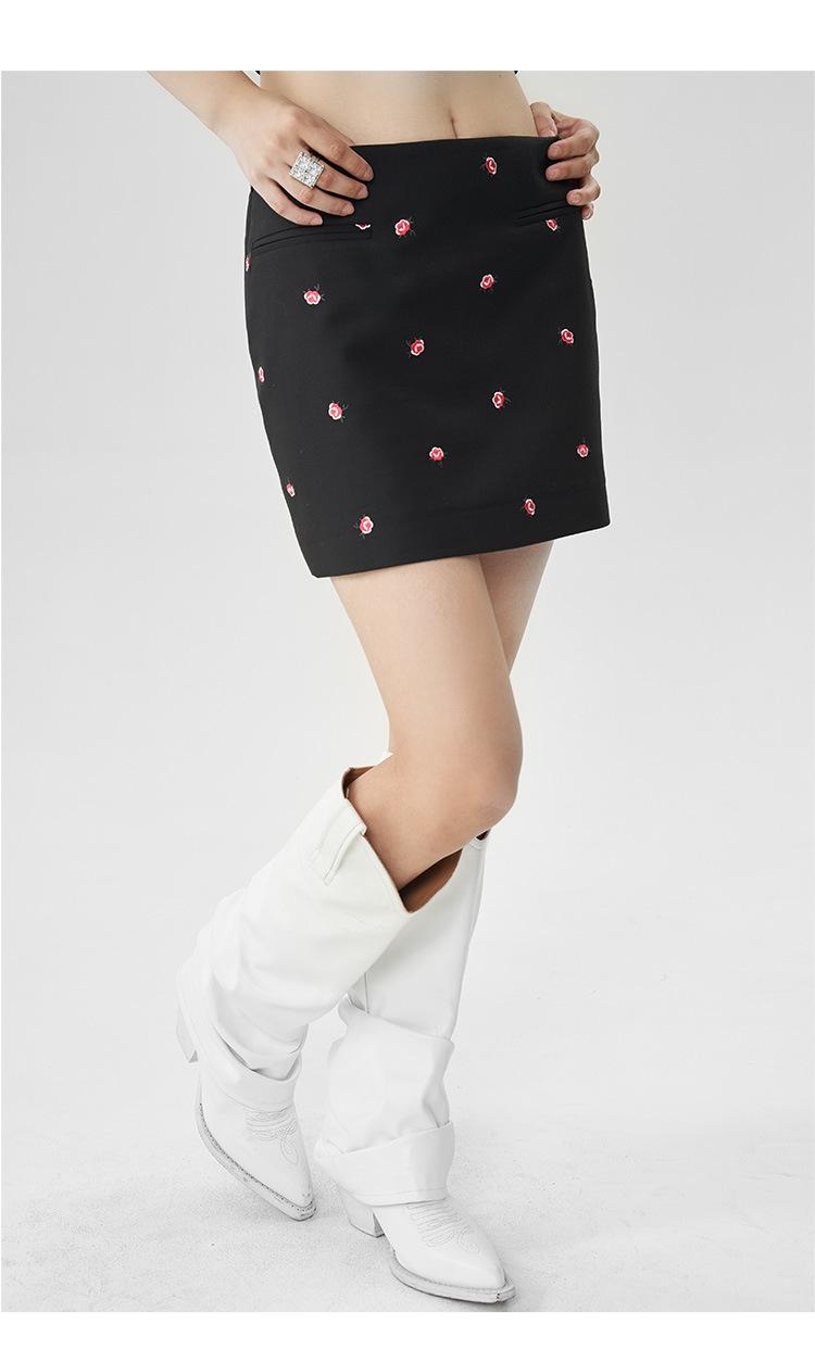 Nuevo Otoño e Invierno 2024 Falda Tubo Bordada Floral de Cintura Alta Ajustada Adelgazante de Trece Filas Falda de Diseño Nicho Original