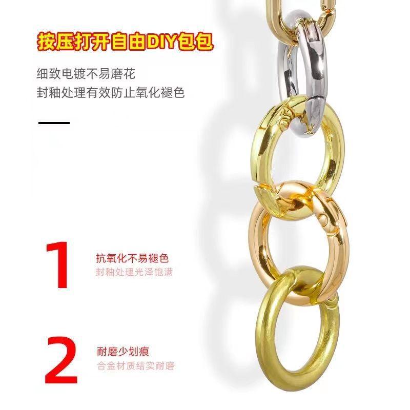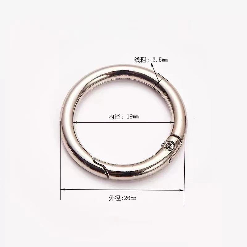 Anillo de resorte de aleación de zinc, hecho a mano, accesorios de joyería, anillo abierto, hebilla de anillo redondo, llavero, hebilla de bolso, hebilla de gancho elástico