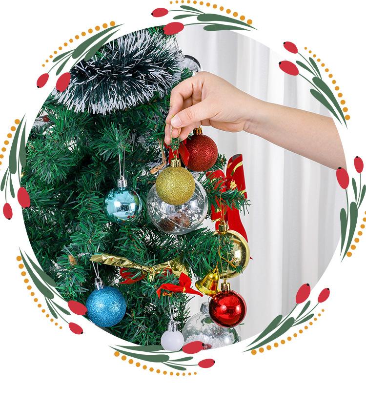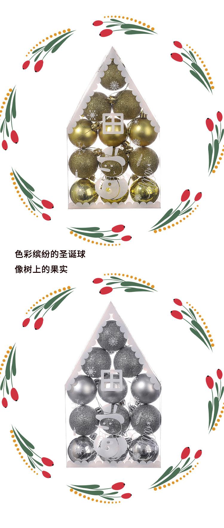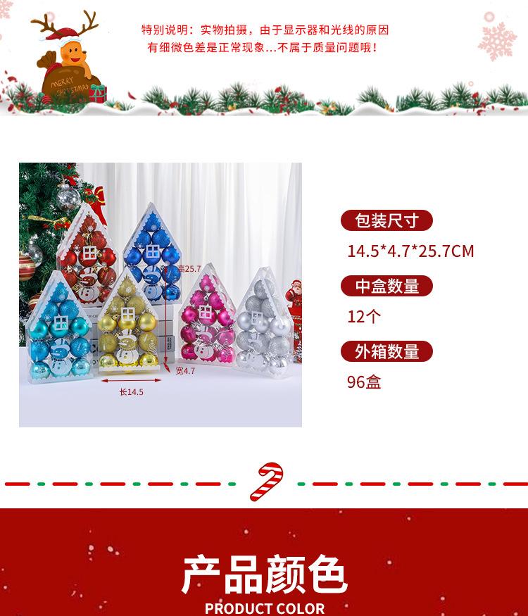 Bola navideña transfronteriza de 5 cm, galvanizada, brillante, hueca, de plástico, con impresión de casa de moda, con colgante pequeño de árbol de Navidad.