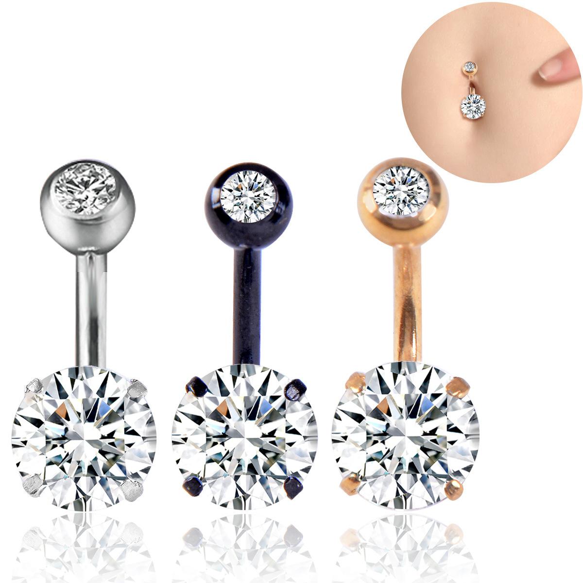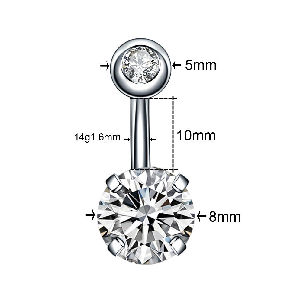 Acero Inoxidable 4 Garras Zircón Redondo Anillo para Ombligo Zirconio Cuatro Garras Uña 0 Uña para Ombligo Botón para Ombligo Perforación Corporal Rosca