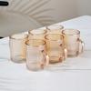 Vaso de agua de verano con asa al por mayor de vidrio de grano vertical creativo, vaso de jugo con asa, vaso de café de vidrio de boca grande, vaso de leche