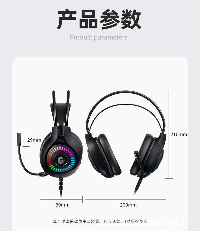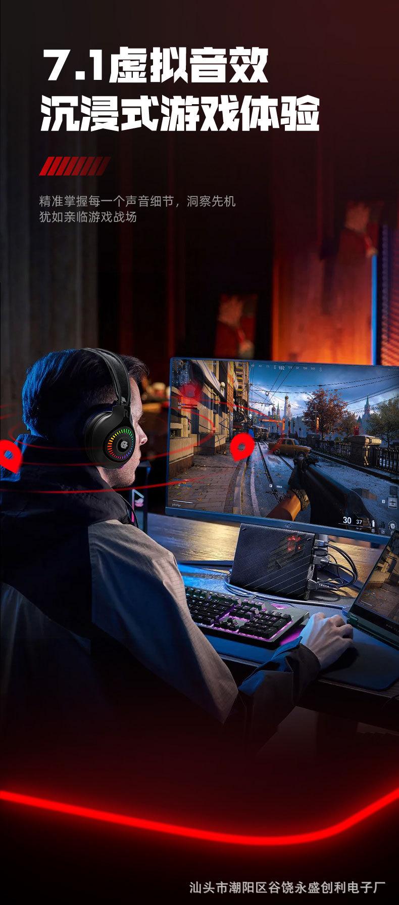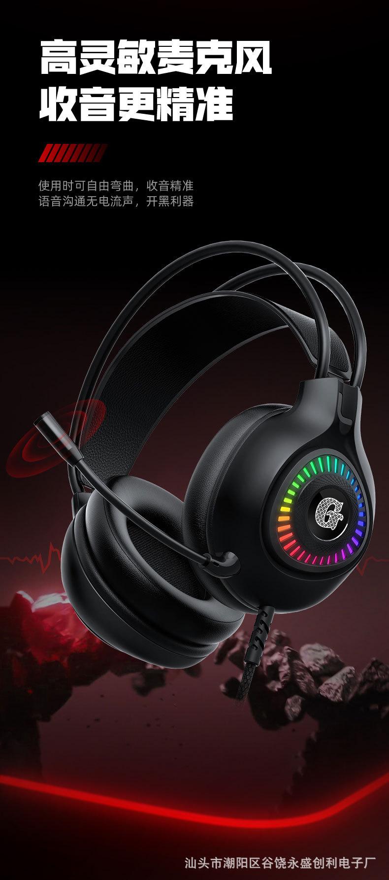Auriculares para juegos de deportes electrónicos con café en Internet GH801, auriculares con cable USB, tarjeta de sonido 7.1 RGB, para comer pollo, escuchar voz y bits de habla