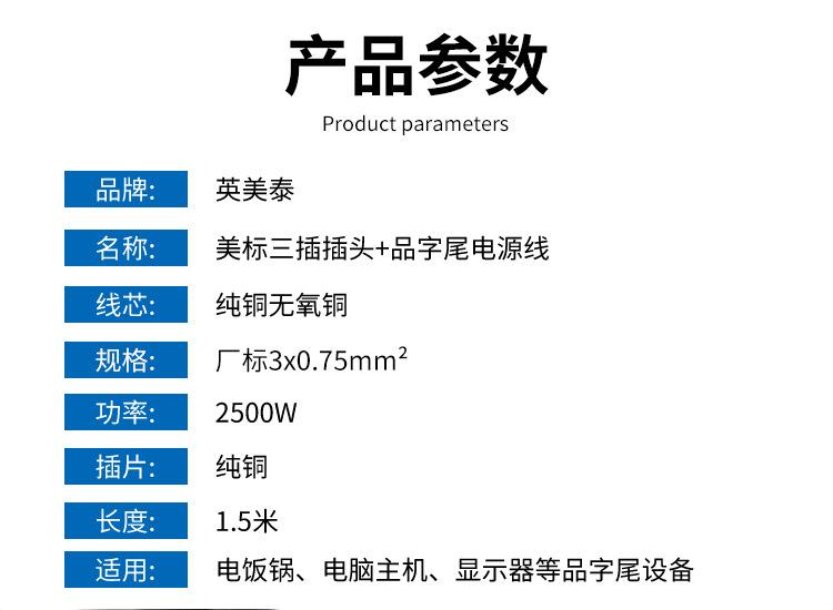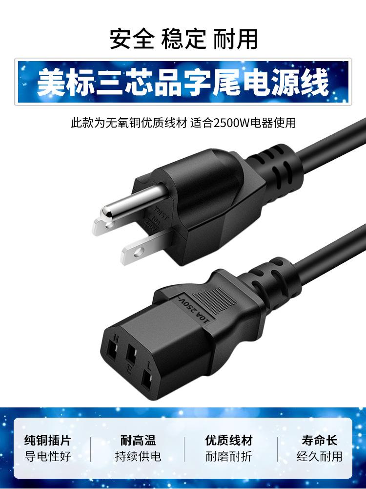 Cable de alimentación con enchufe estándar americano de cobre directo de fábrica con cola de clavija Cable de alimentación estándar americano conexión a computadora 1,5 m