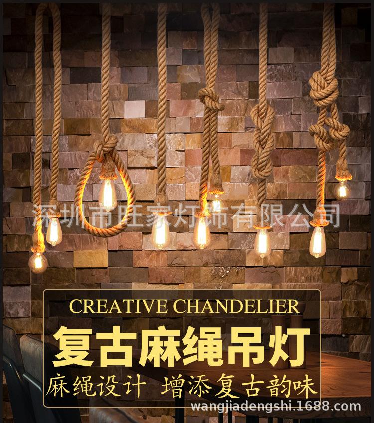 Lámpara de araña de cuerda de cáñamo, estilo industrial retro, para ropa, cafetería, cibercafé, bar, restaurante, personalidad creativa, estilo americano