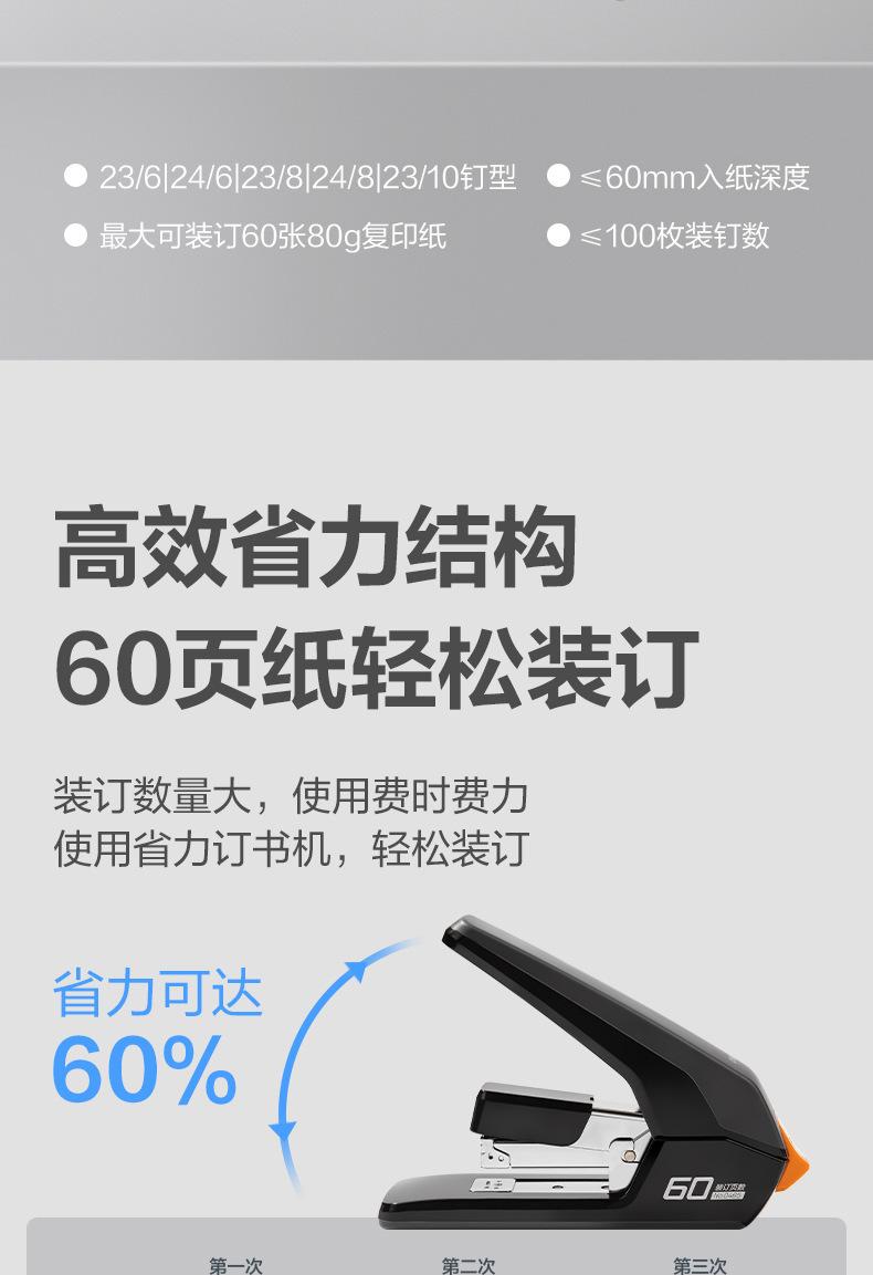 Grapadora de oficina grande, resistente y engrosada, que ahorra mano de obra, Deli 0465, con capacidad para 60 páginas.