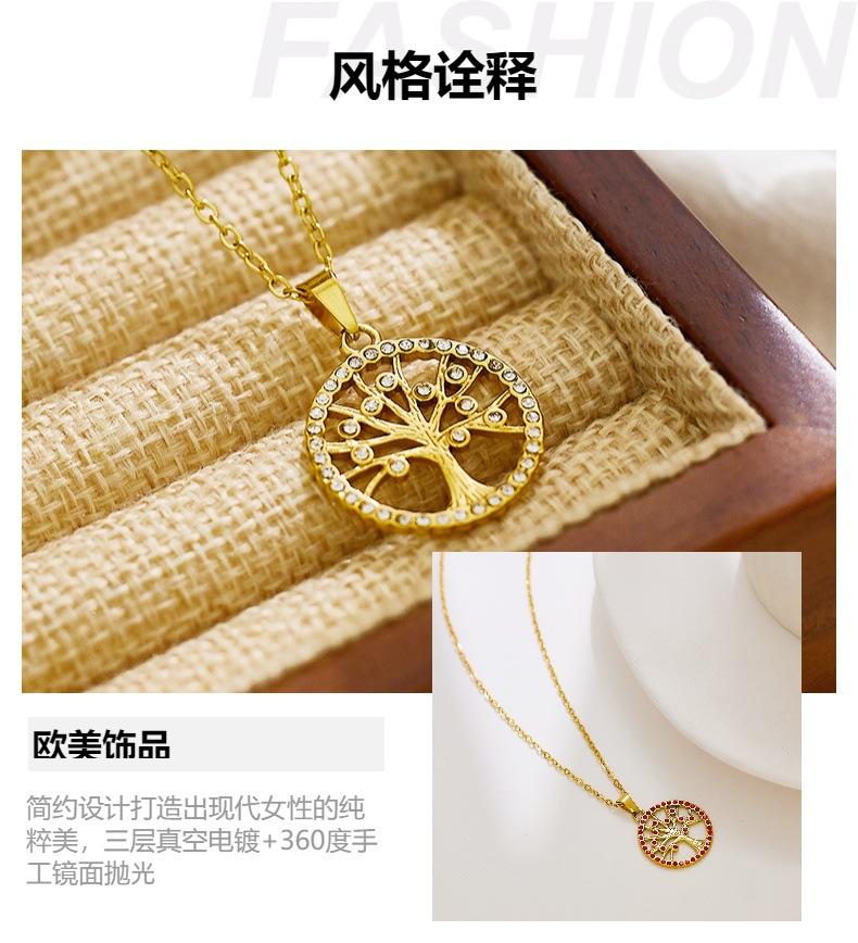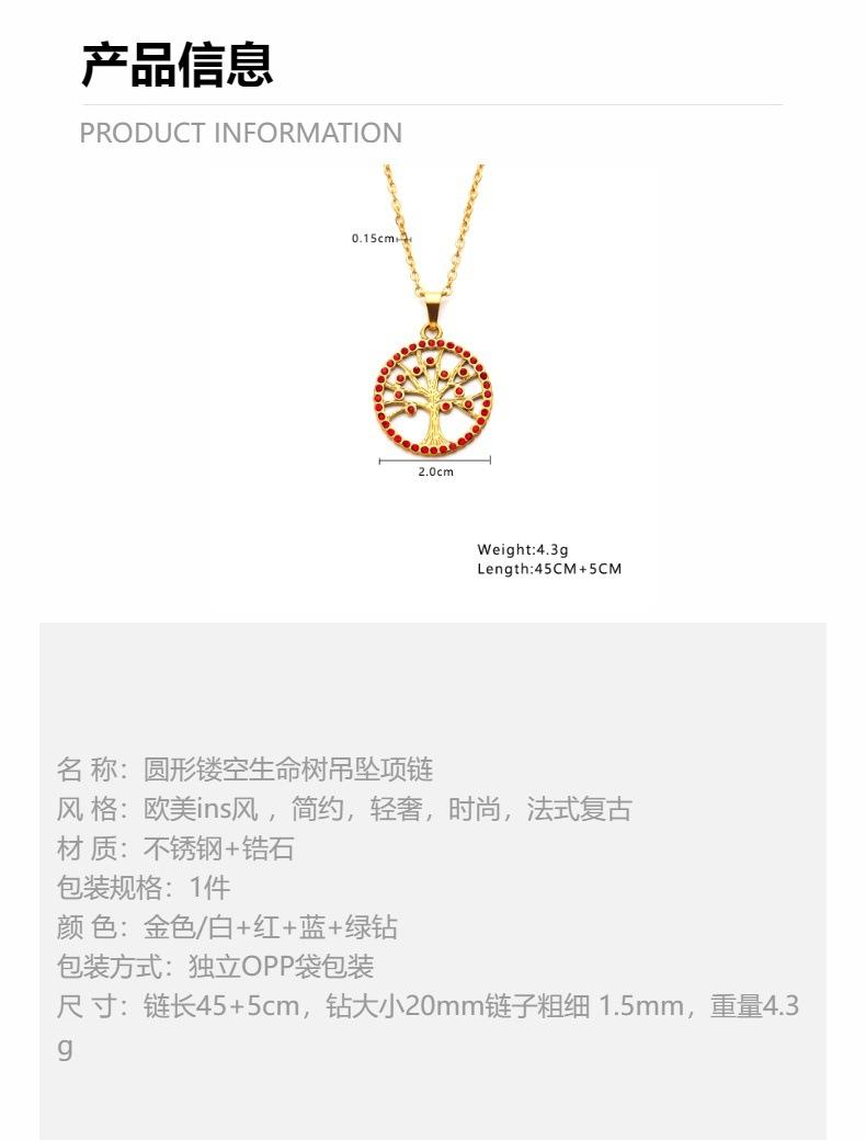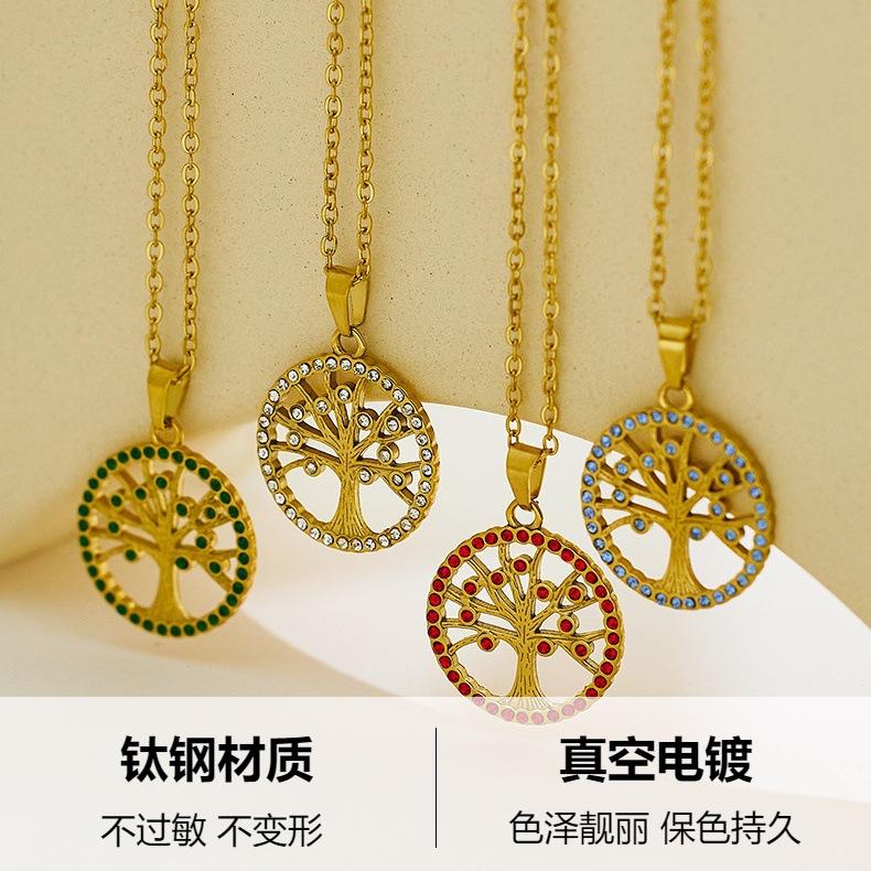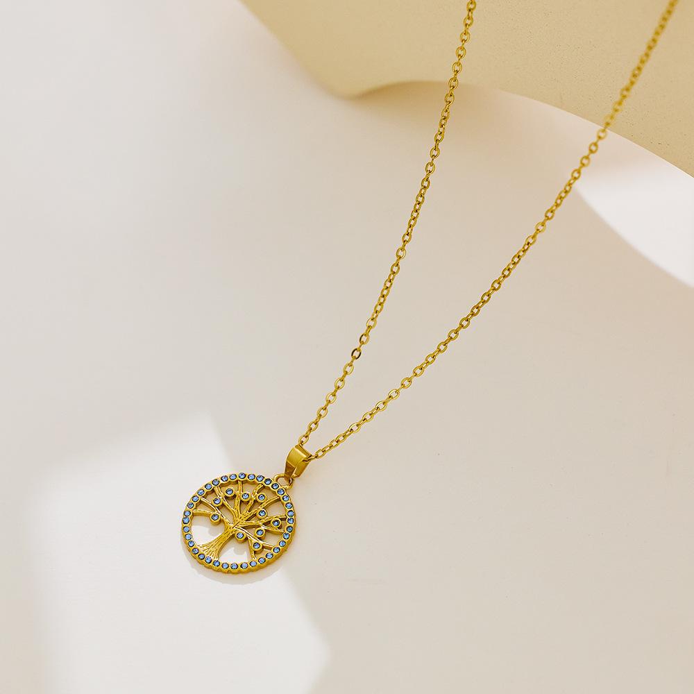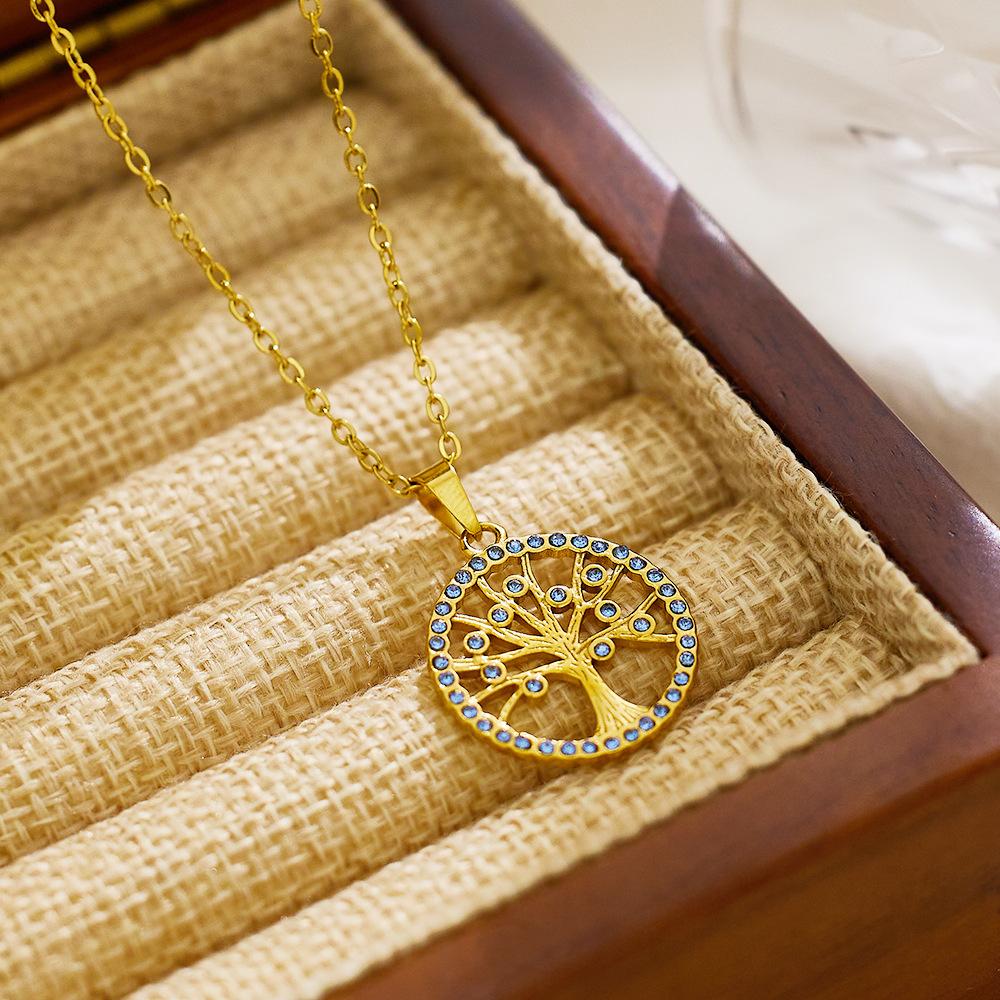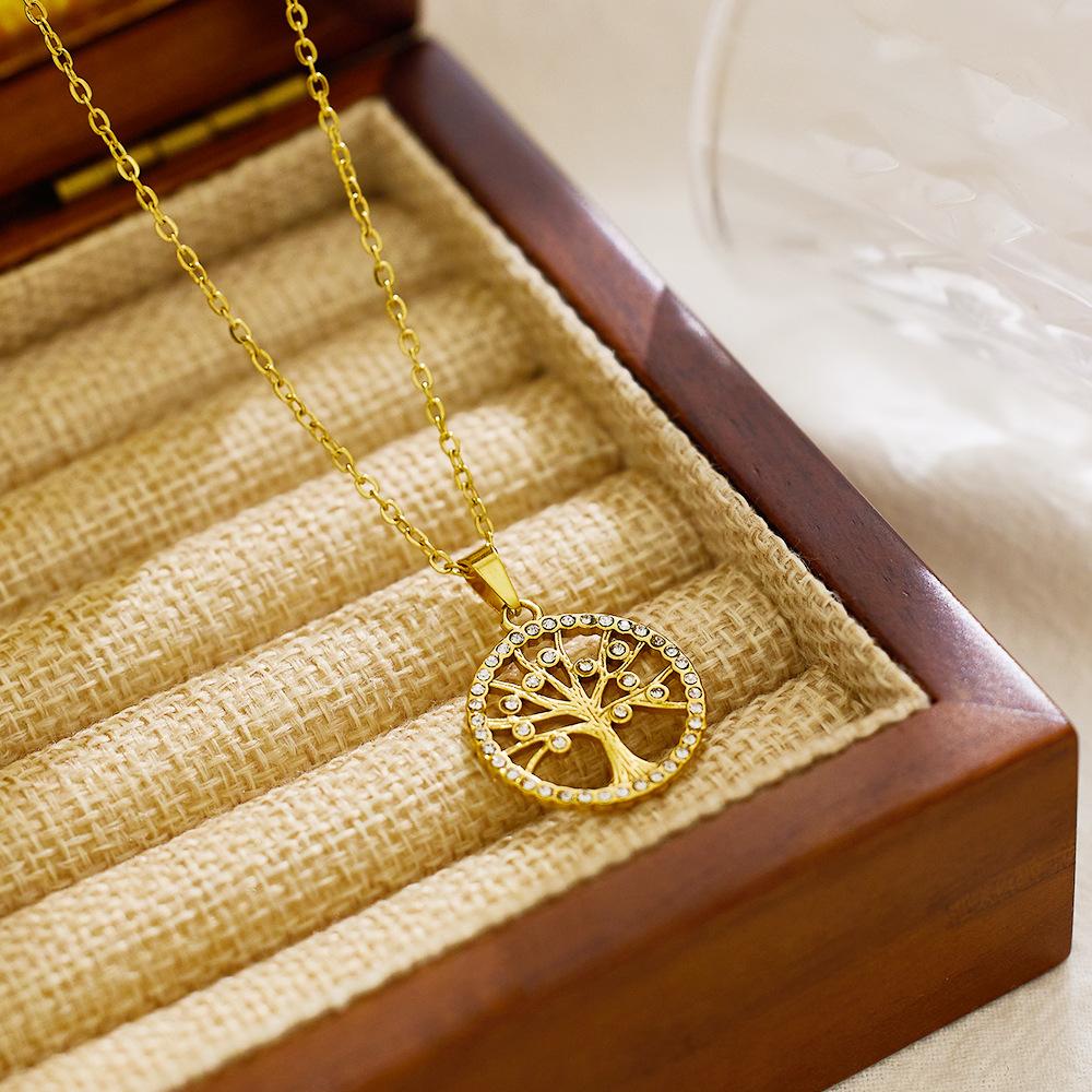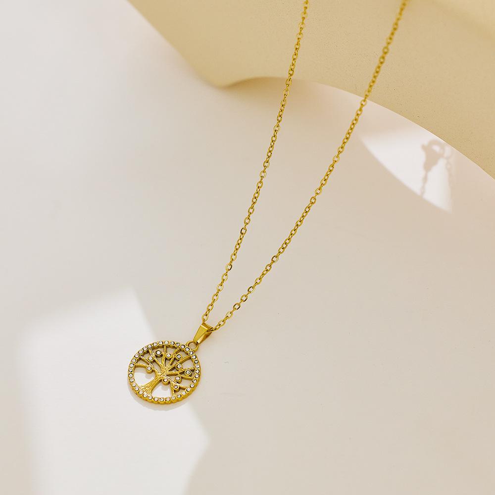 Compra Collar Geométrico Estilo Ins Europeo y Americano con Diamante Acero de Titanio Cadena Clavicular Corte Redondo Calado Árbol de la Vida Colgante Collar para Mujer al por mayor en Joom.pro