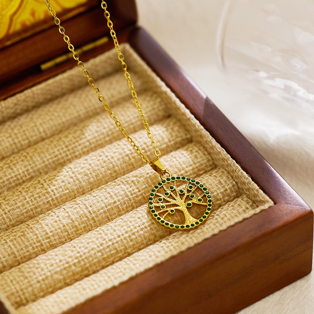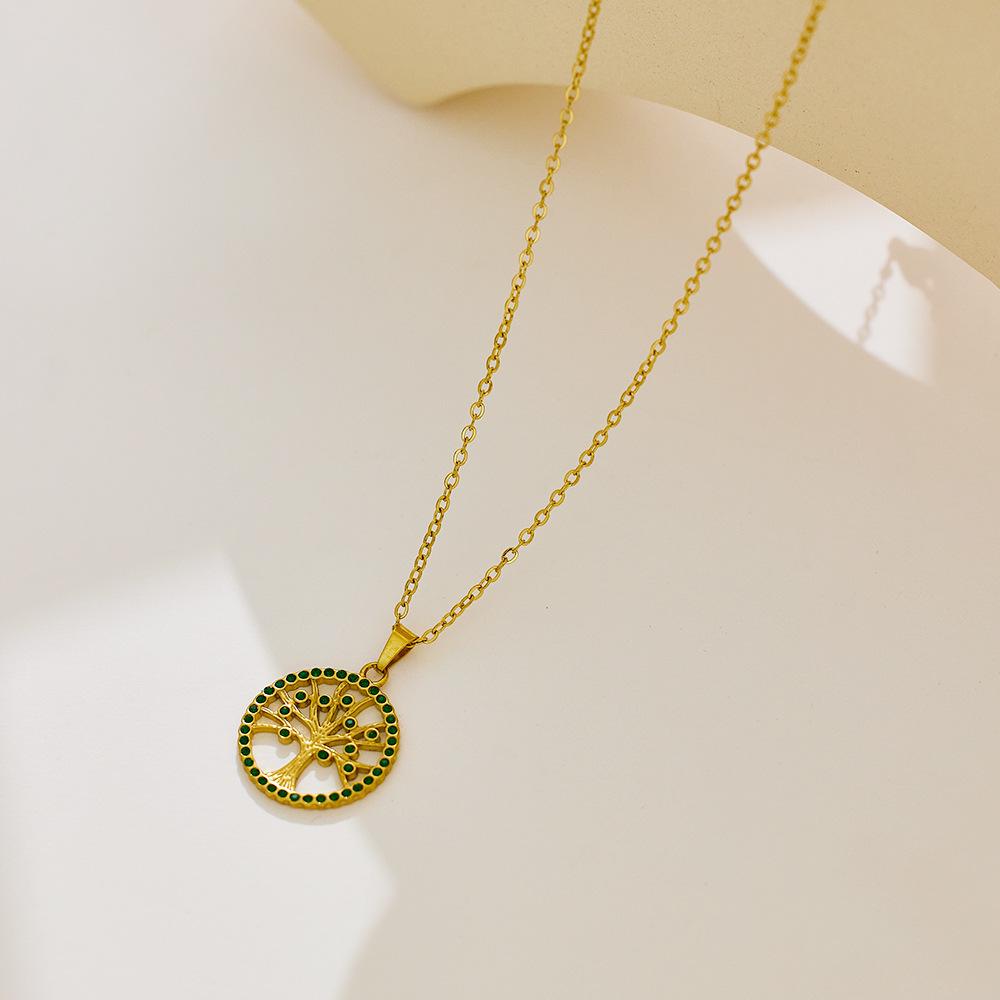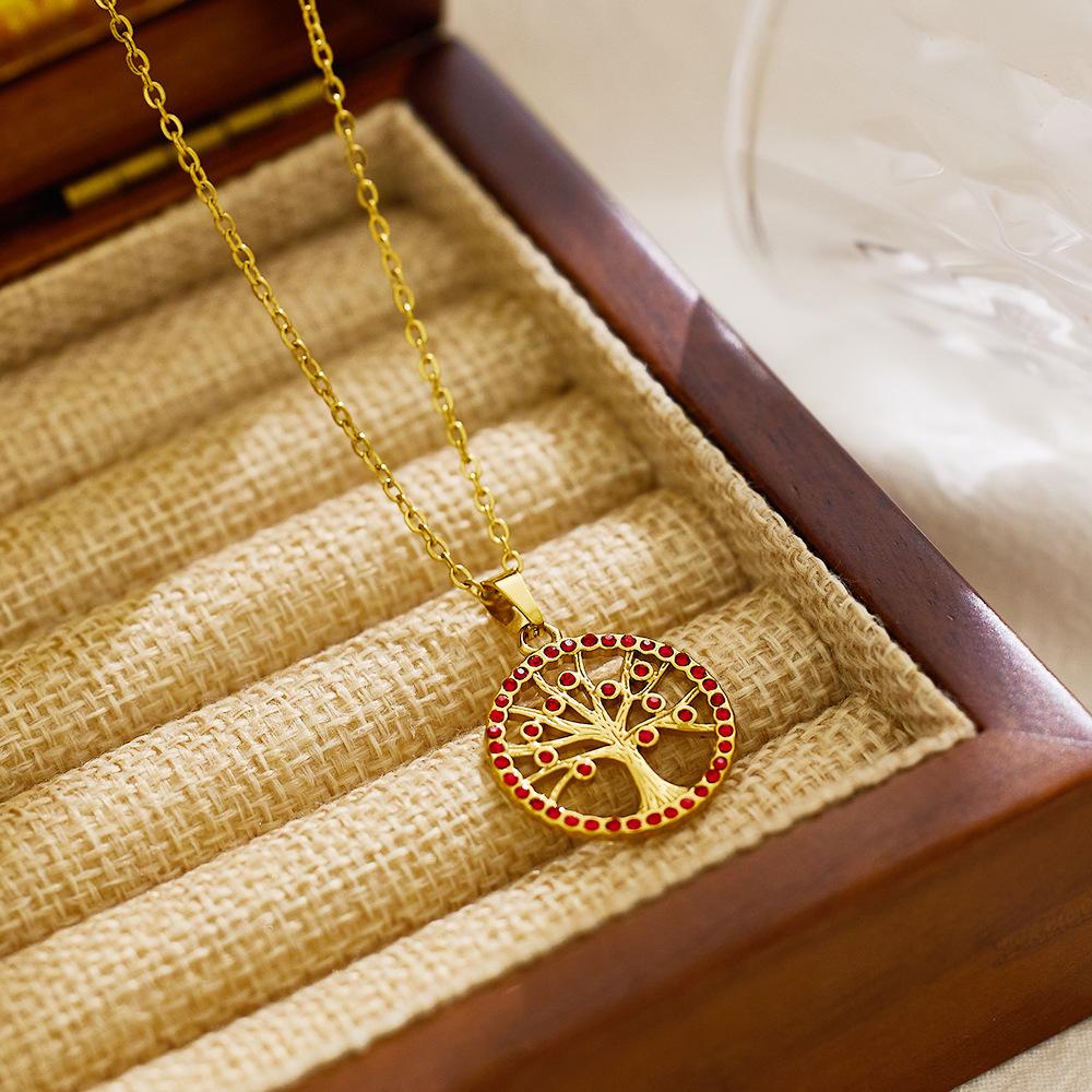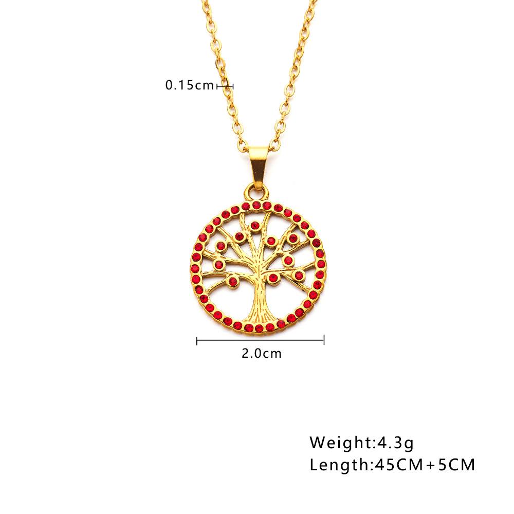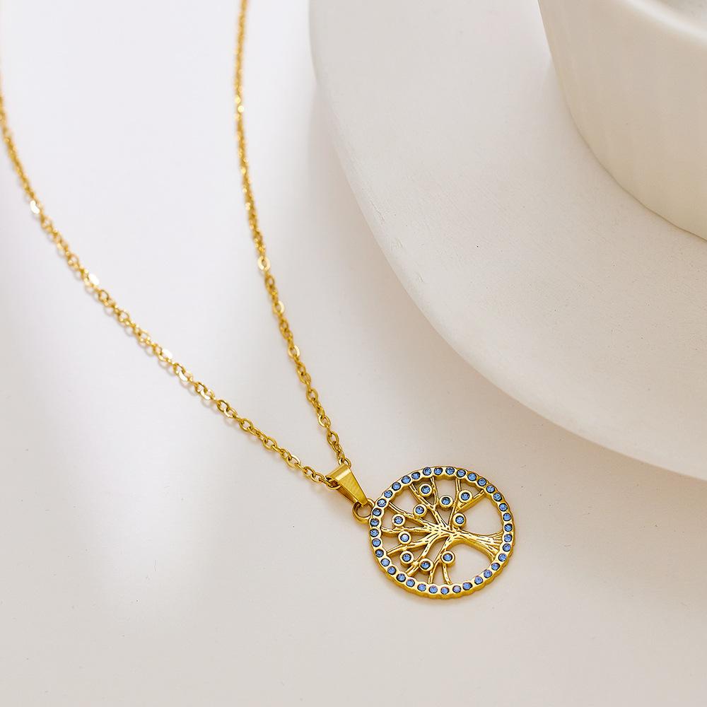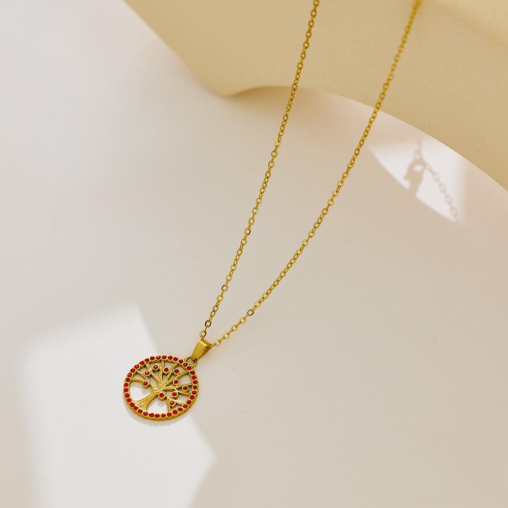 Compra Collar Geométrico Estilo Ins Europeo y Americano con Diamante Acero de Titanio Cadena Clavicular Corte Redondo Calado Árbol de la Vida Colgante Collar para Mujer al por mayor en Joom.pro