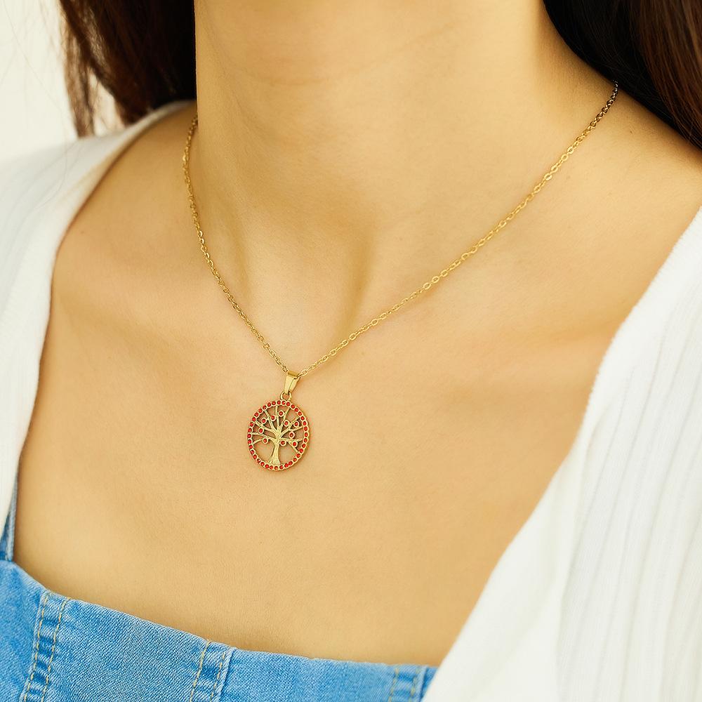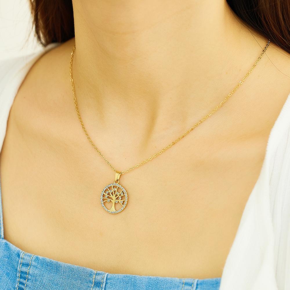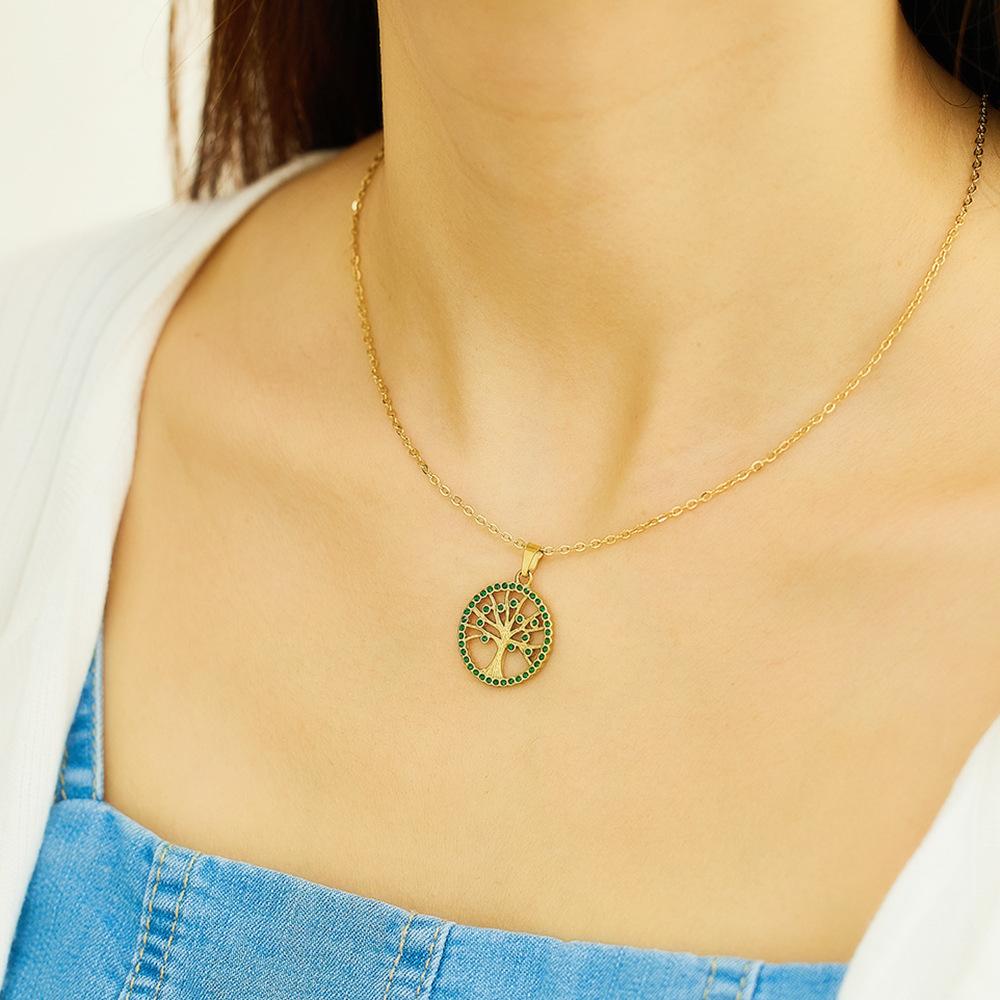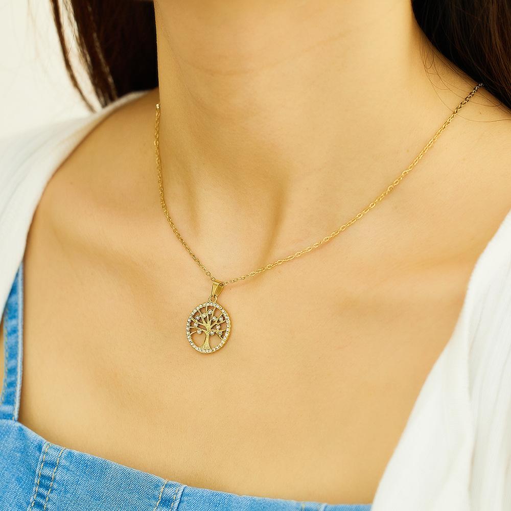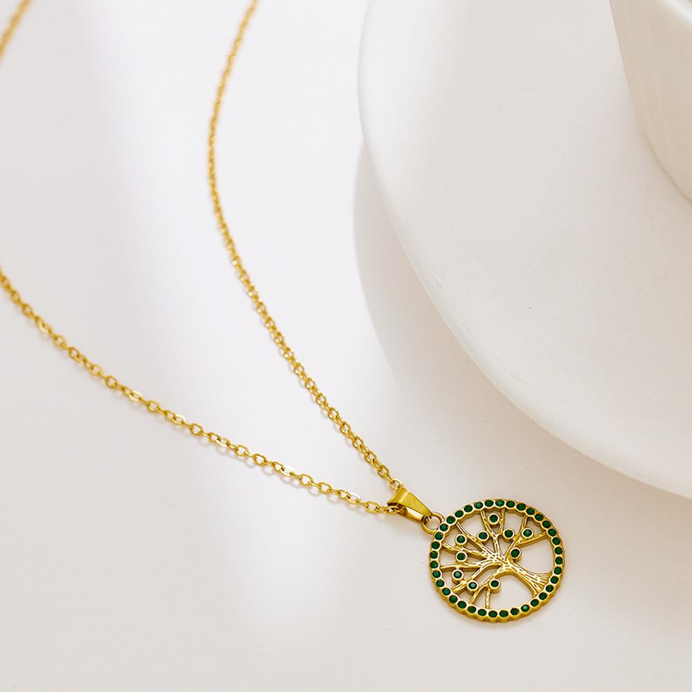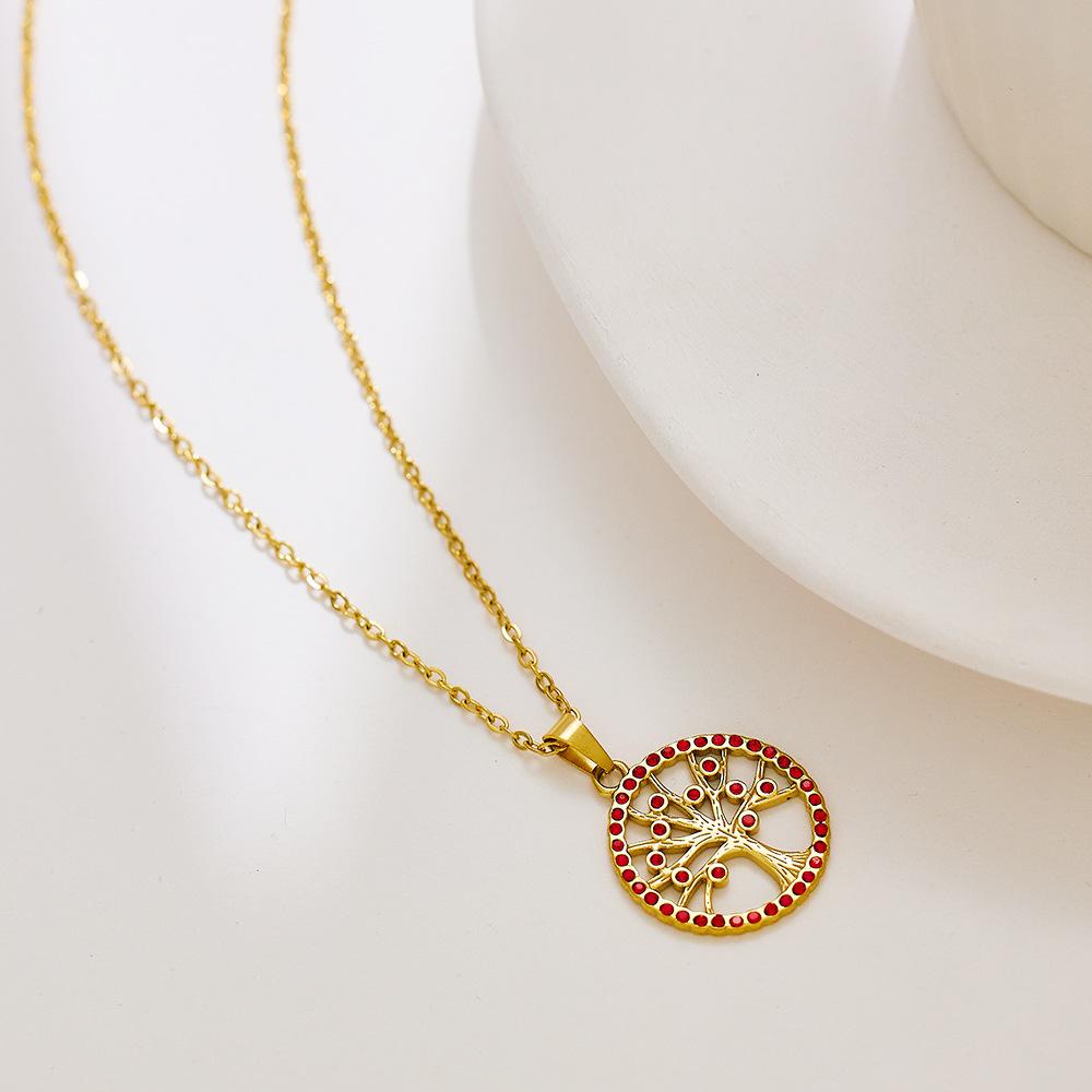 Compra Collar Geométrico Estilo Ins Europeo y Americano con Diamante Acero de Titanio Cadena Clavicular Corte Redondo Calado Árbol de la Vida Colgante Collar para Mujer al por mayor en Joom.pro