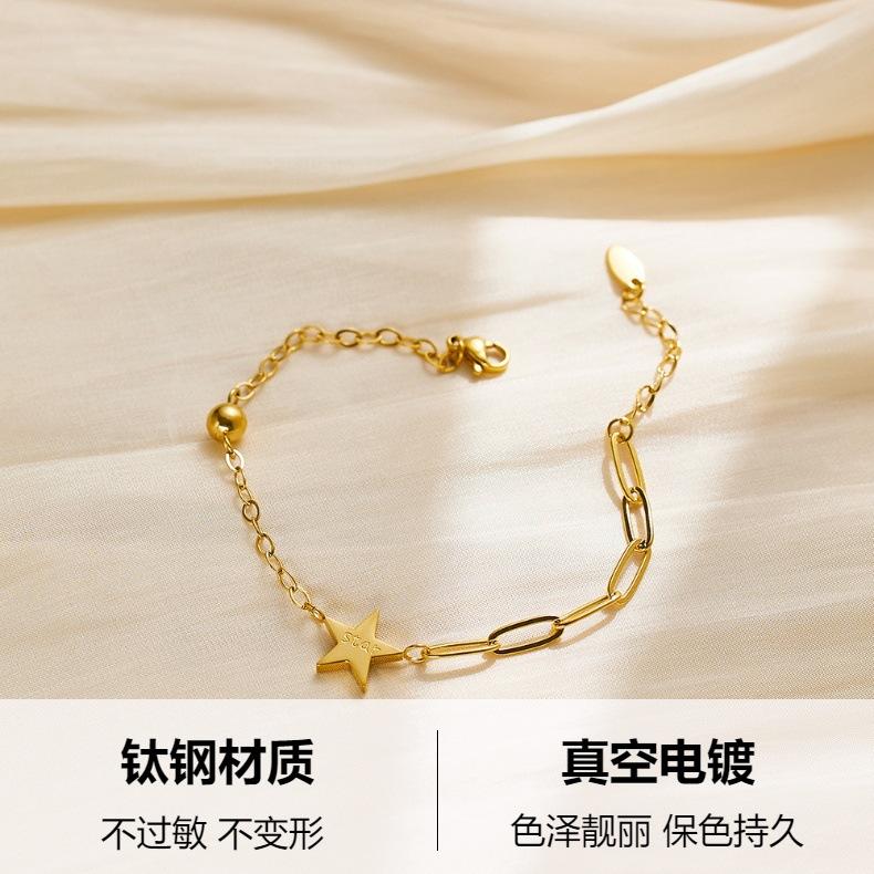 Pulsera Europea y Americana de Estilo Ins Nicho de Alta Gama Pulsera de Cadena Chapada en Oro de 18K Pulsera de Estrella de Acero de Titanio Joyería para Mujer