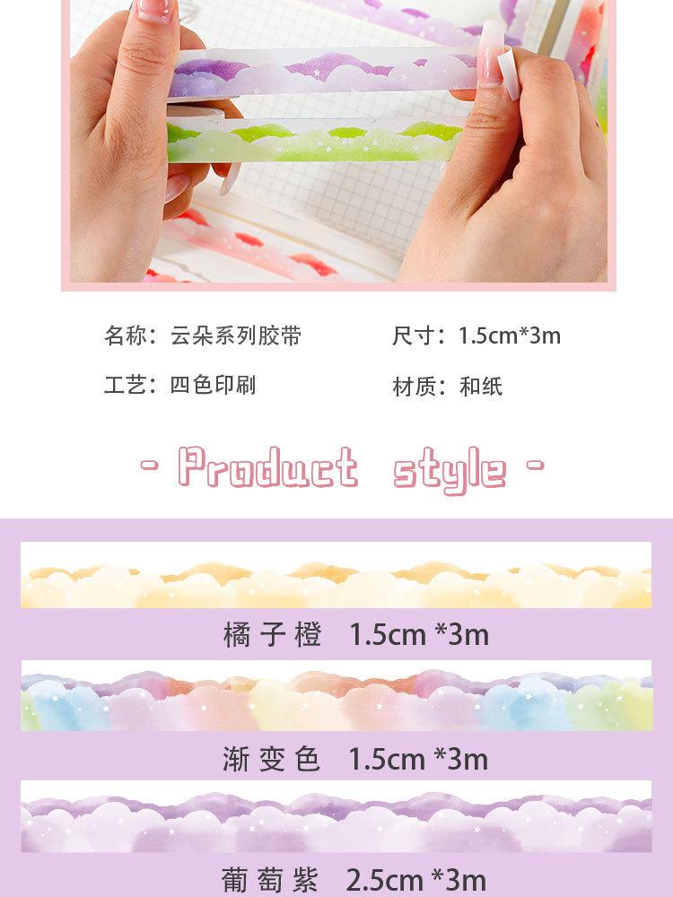 Calcomanías de Cinta de Nube Colorida Estilo Ins Decoración de Manualidades Material de Paisajismo Calcomanías de Dibujos Animados con Forma de Ola