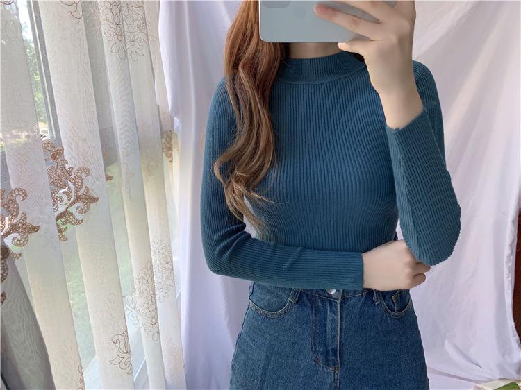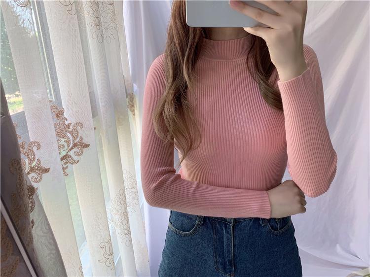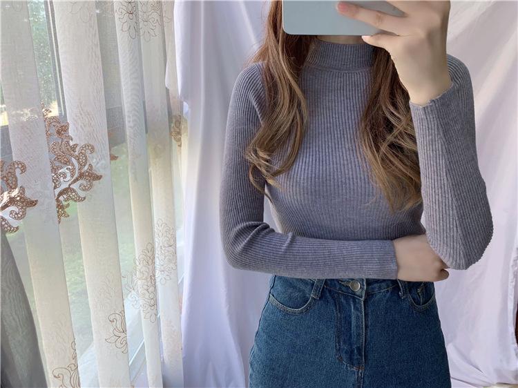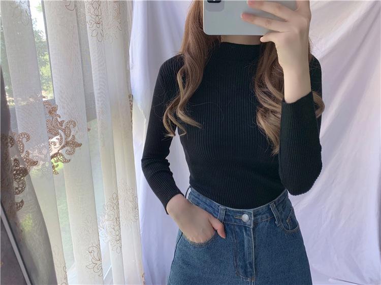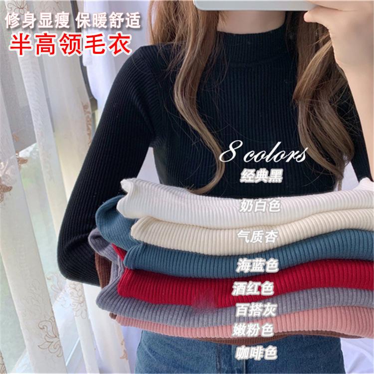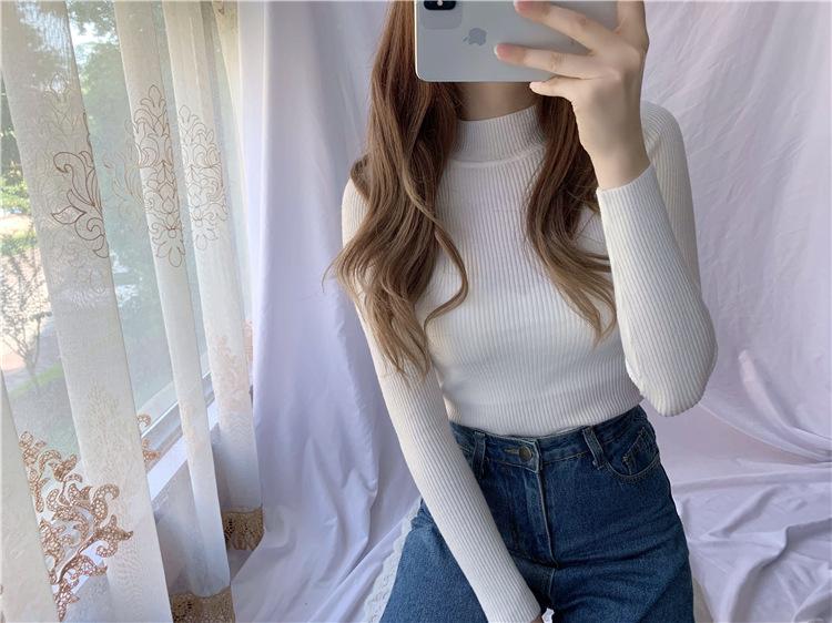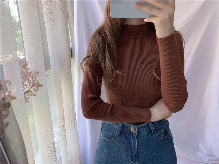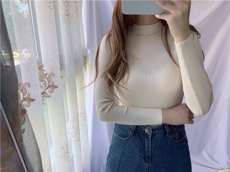 Suéter Ropa Interior para Mujer Aspecto Adelgazante 2024 Otoño e Invierno Color Puro Básico Medio Cuello Tortuga Fondo Tejido de Punto para Mujer Una Pieza Envío Directo