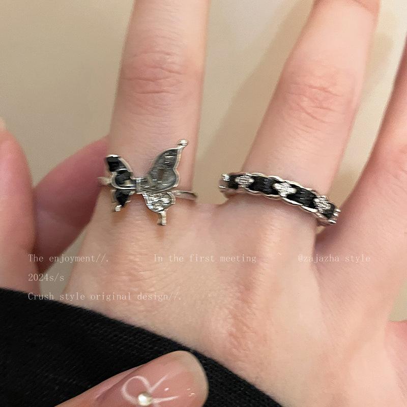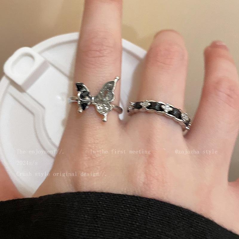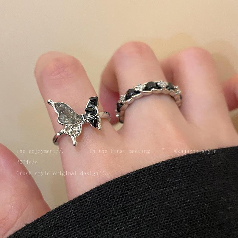 Anillo Abierto de Mariposa de Piedra de Color para Mujer, Anillo de Dedo Avanzado de Nicho Cool y Moderno, Diseño de Temperamento, Anillo Ajustable para Verano